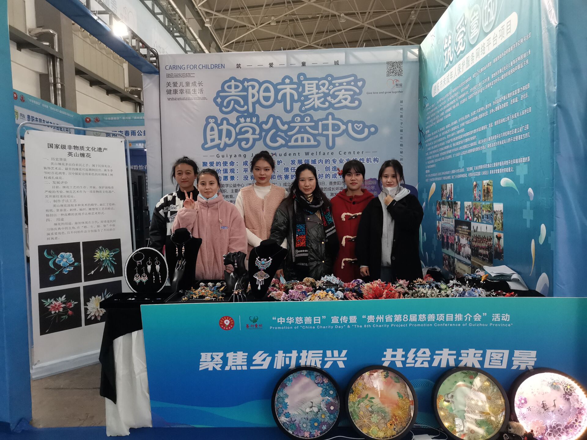 12月19日(星期六)上午,我校艺术教育、学前教育专业教师龙雪梅和5名同学受邀参加贵州省第八届慈善推介会。会议中龙雪梅老师向与会人员宣传了我国非物质文化遗产英山缠花,同时将在会场售卖缠花所得利润一部分捐给贵州省慈善总会。