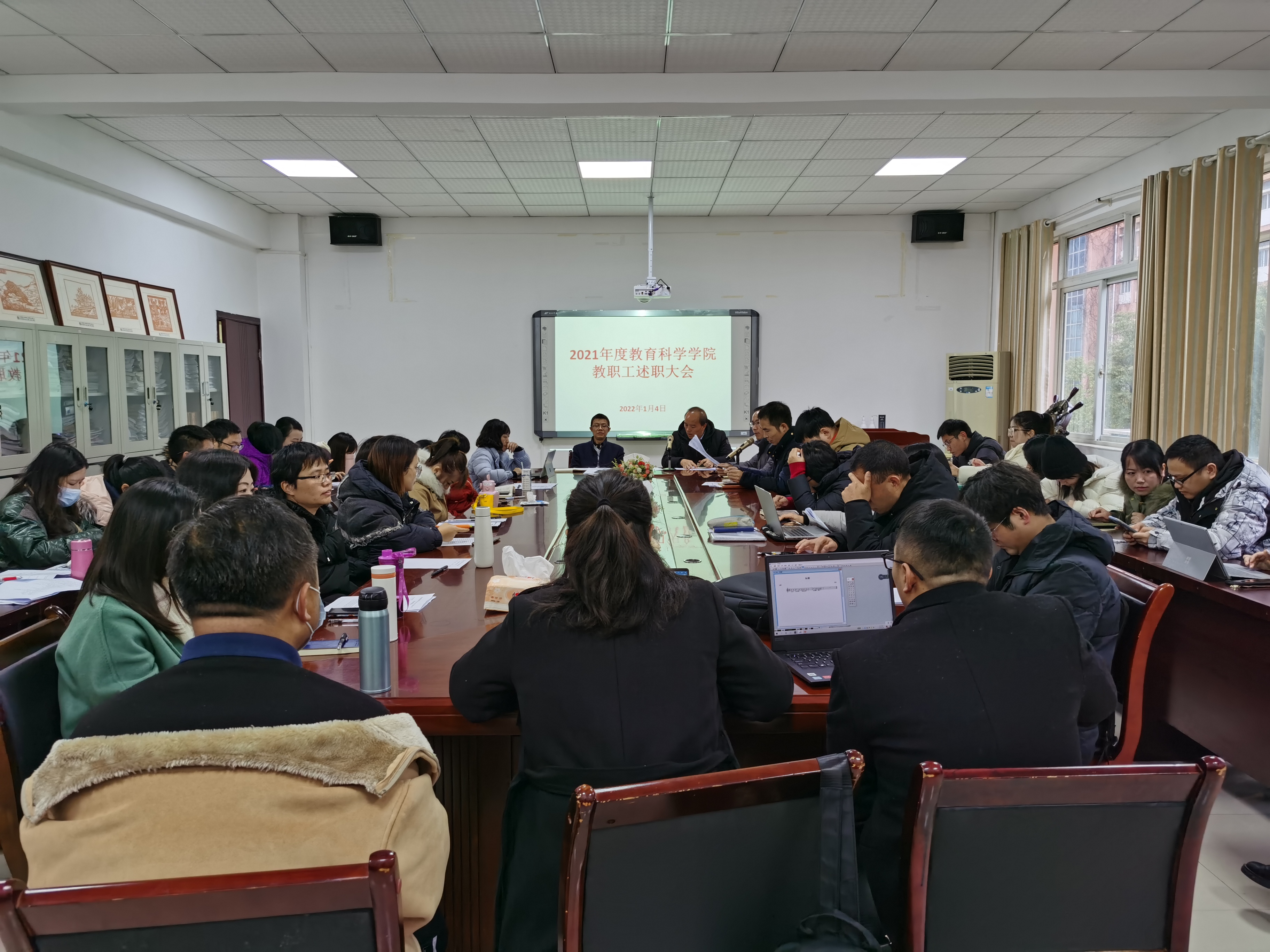 2022年1月4日上午,教育科学学院在会议室开展教职工述职评议考核会。会议由学院院长宋万琚主持。