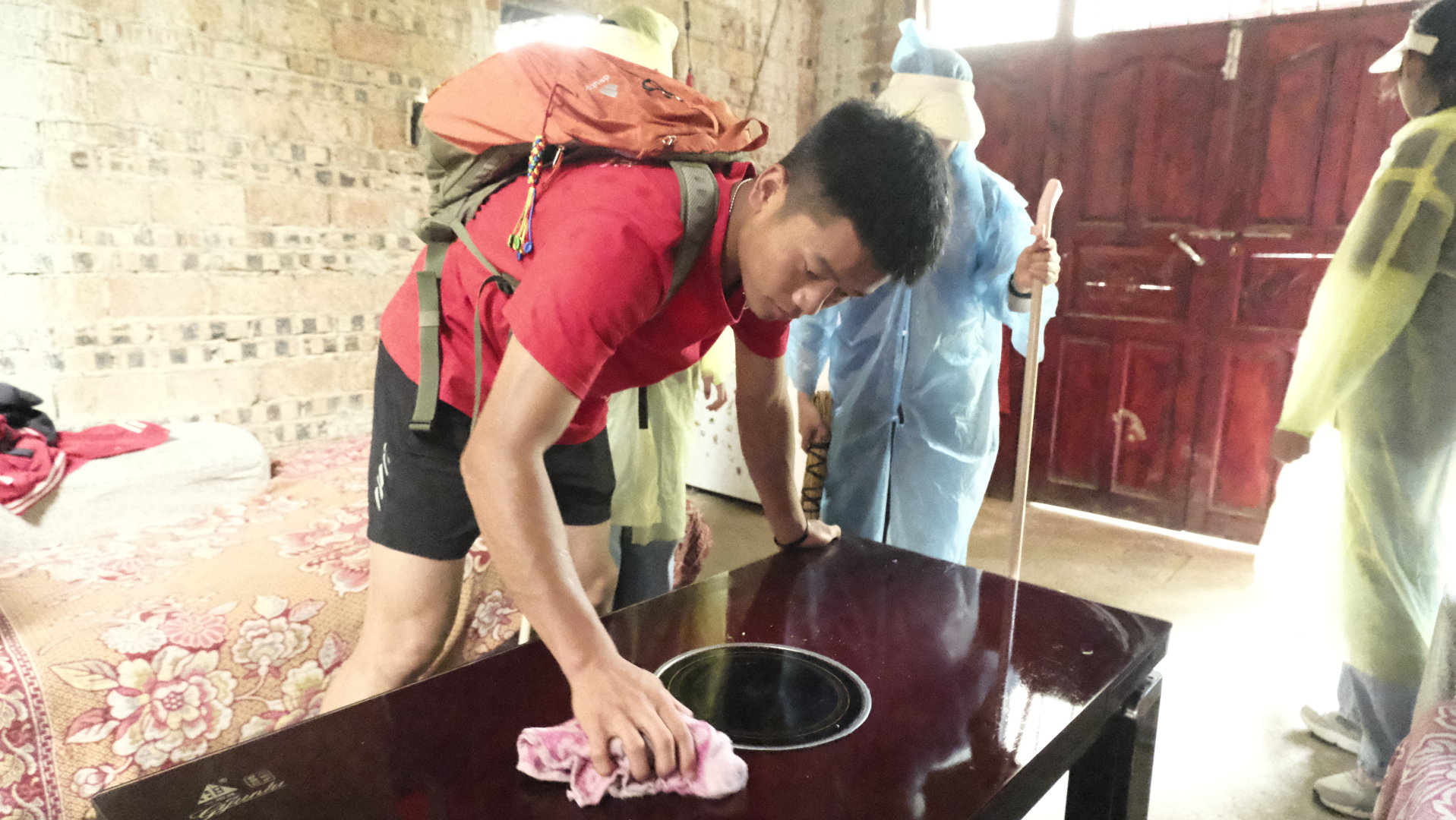 志愿团队开展了丰富多彩的文艺活动,其中包括应用心理学专业学生组织的团辅活动和曼陀罗绘画以及基本礼仪教学、学前教育专业学生组织丰富多样的课程(音乐课、舞蹈课、篮球课、花样跳绳课)以及带领小朋友们表演红色经典儿童剧、特殊教育专业学生组织的手语课和普通话课、艺术教育专业学生组织的党史拼图绘画。同时,志愿团队在走访村民过程中宣讲党史故事、普及普通话、为村民打扫卫生、做农活、拍全家福,还为该村绘制富有民族特色的墙绘、打造舞蹈教室。此外,当地村民为志愿团队表演芦笙伴奏舞蹈,小朋友们教志愿者们说苗语、跳苗舞、吹芦笙以及体验田间生活。最后,志愿团队基于整体的教学活动举办了一场隆重的文艺汇演,以全体大合唱《没有共产党就没有新中国》为“三下乡”暑期社会实践活动画上圆满的句号。