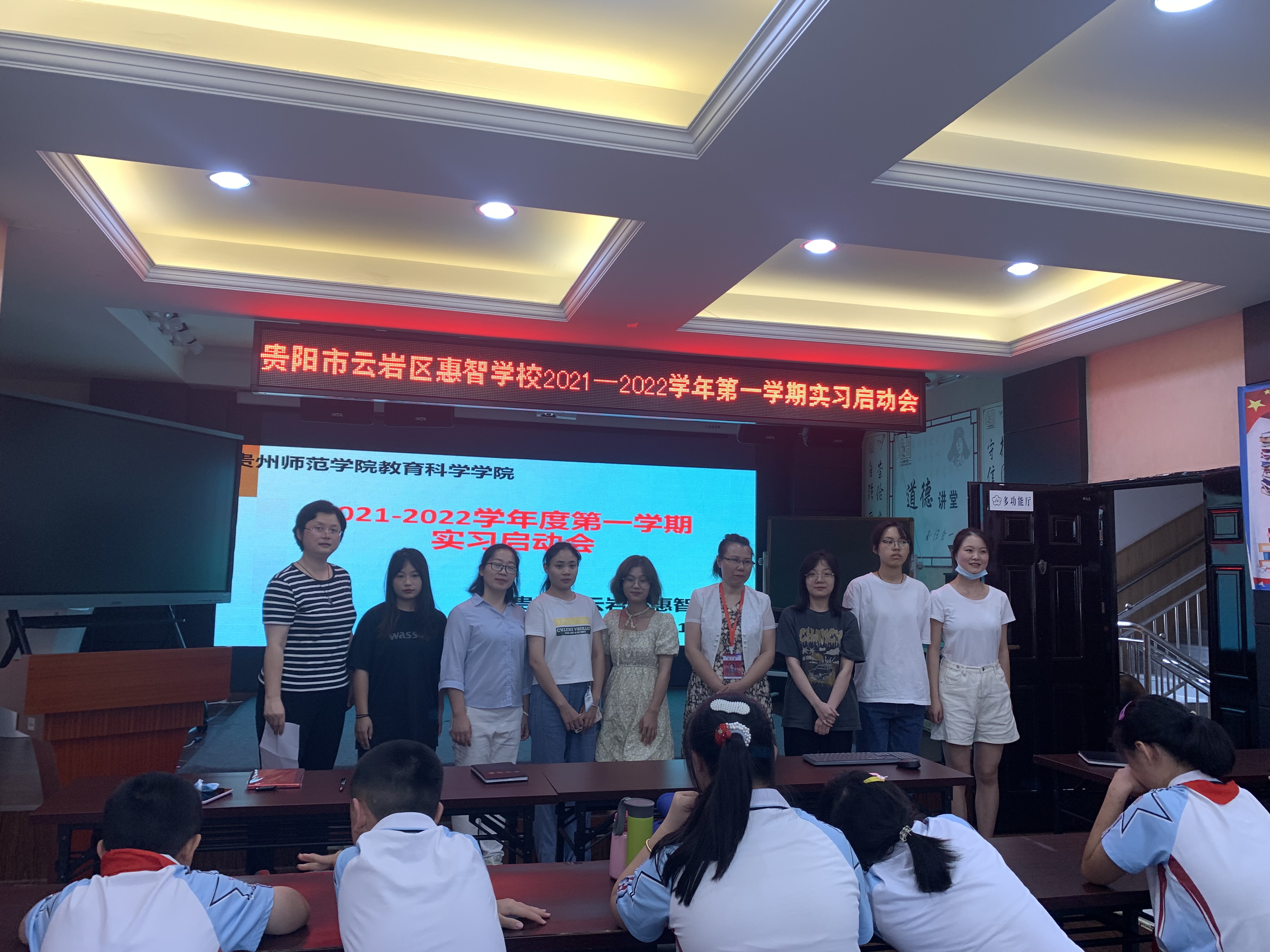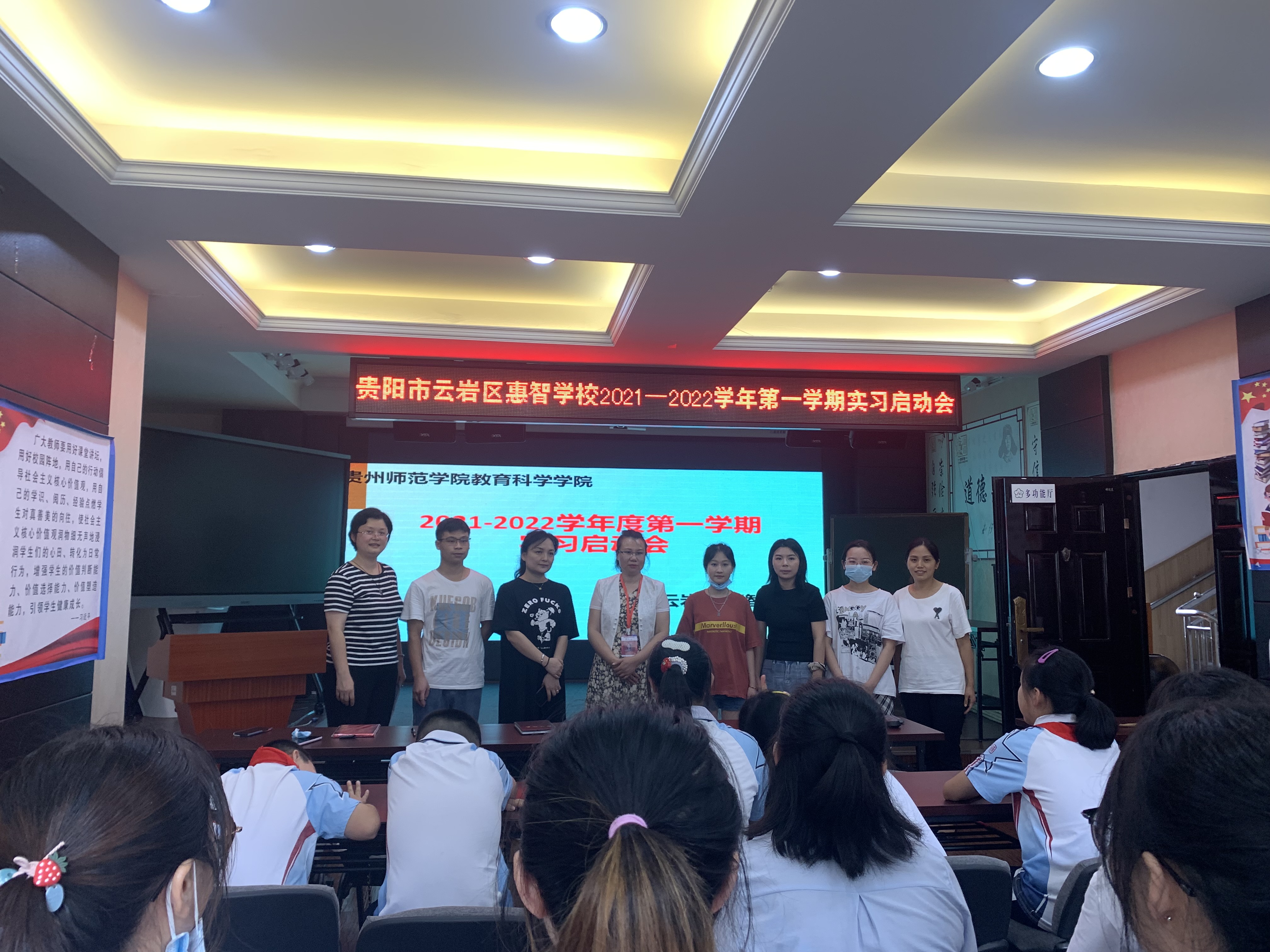 2021年8月30日教育科学学院负责云岩区惠智学校实习工作对接的夏卉芳老师,带领2022届特殊教育专业10名学生到云岩区惠智学校报到,并在云岩区惠智学校实习启动会上做了相关工作的对接,对实习指导老师进行了培训。