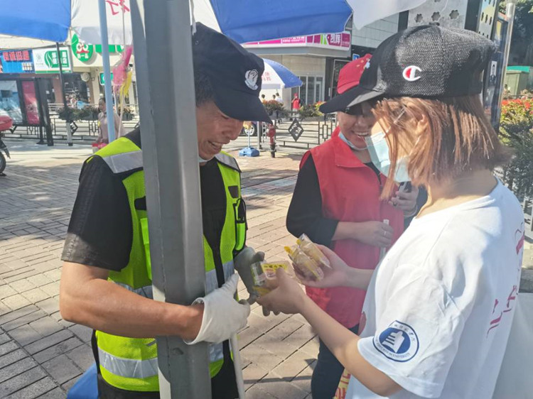 2021年9月21日早上,约绘℃公益社团的13名志愿者一起来到了贵阳市乌当区新添寨。志愿者们为节日期间坚守在岗位的环卫工人,公交车司机;在路边拾荒的老人送去月饼以及中秋节最真挚的祝福。一份份充满爱心的月饼在这个微凉的清晨热情地分给在周边工作的50余名坚守在城市一线的工作人员。感谢他们为这个城市而付出的辛苦劳动,让他们过上一个有爱、幸福、浓情四溢的中秋佳节。活动结束后,志愿者们一起合了影,为此次活动留下了最美的回忆。