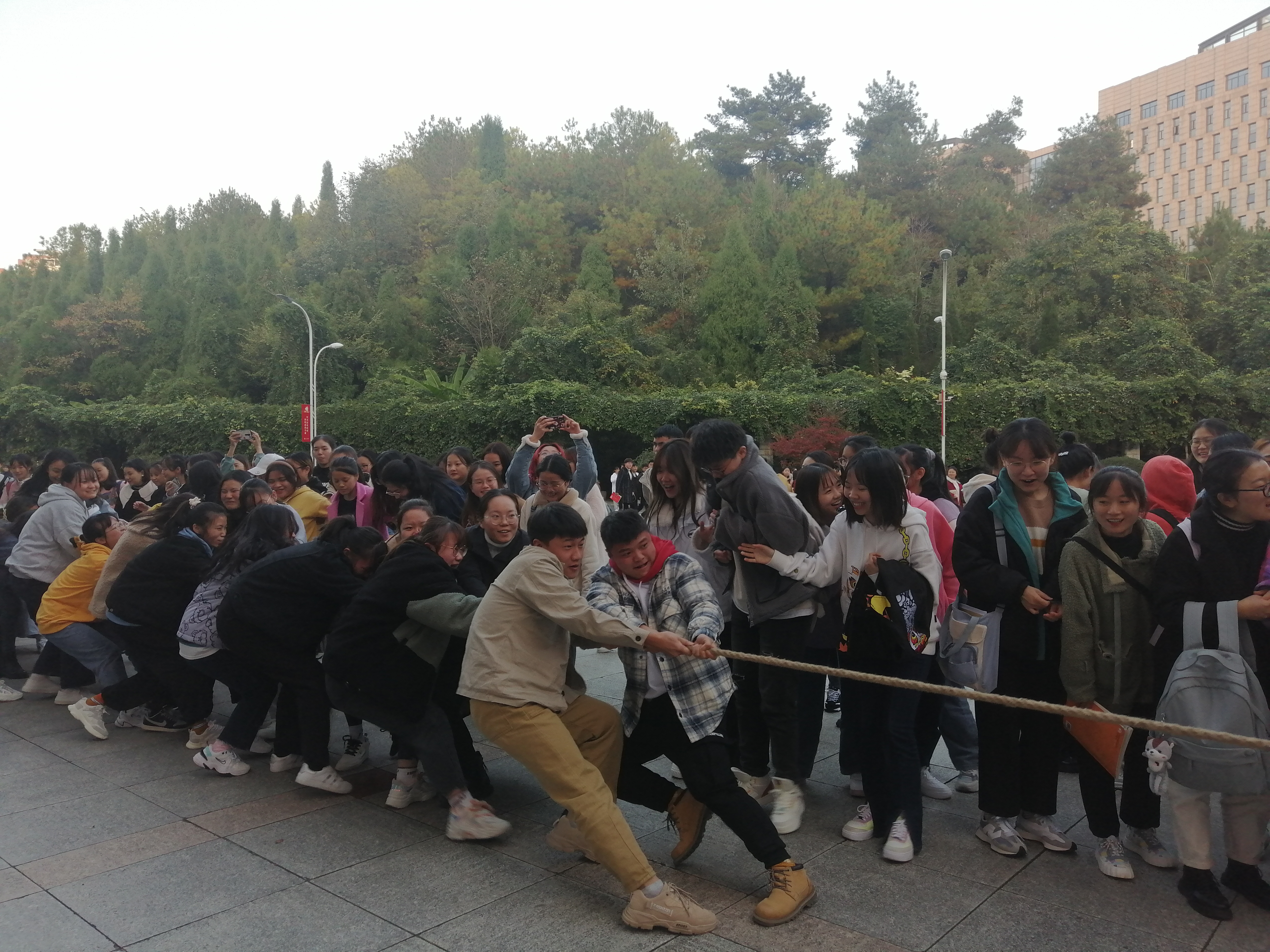 为了丰富了同学们的课余生活,教育科学学院团委学生会同各班班委组织了院级第七届“青春杯拔”河比赛。