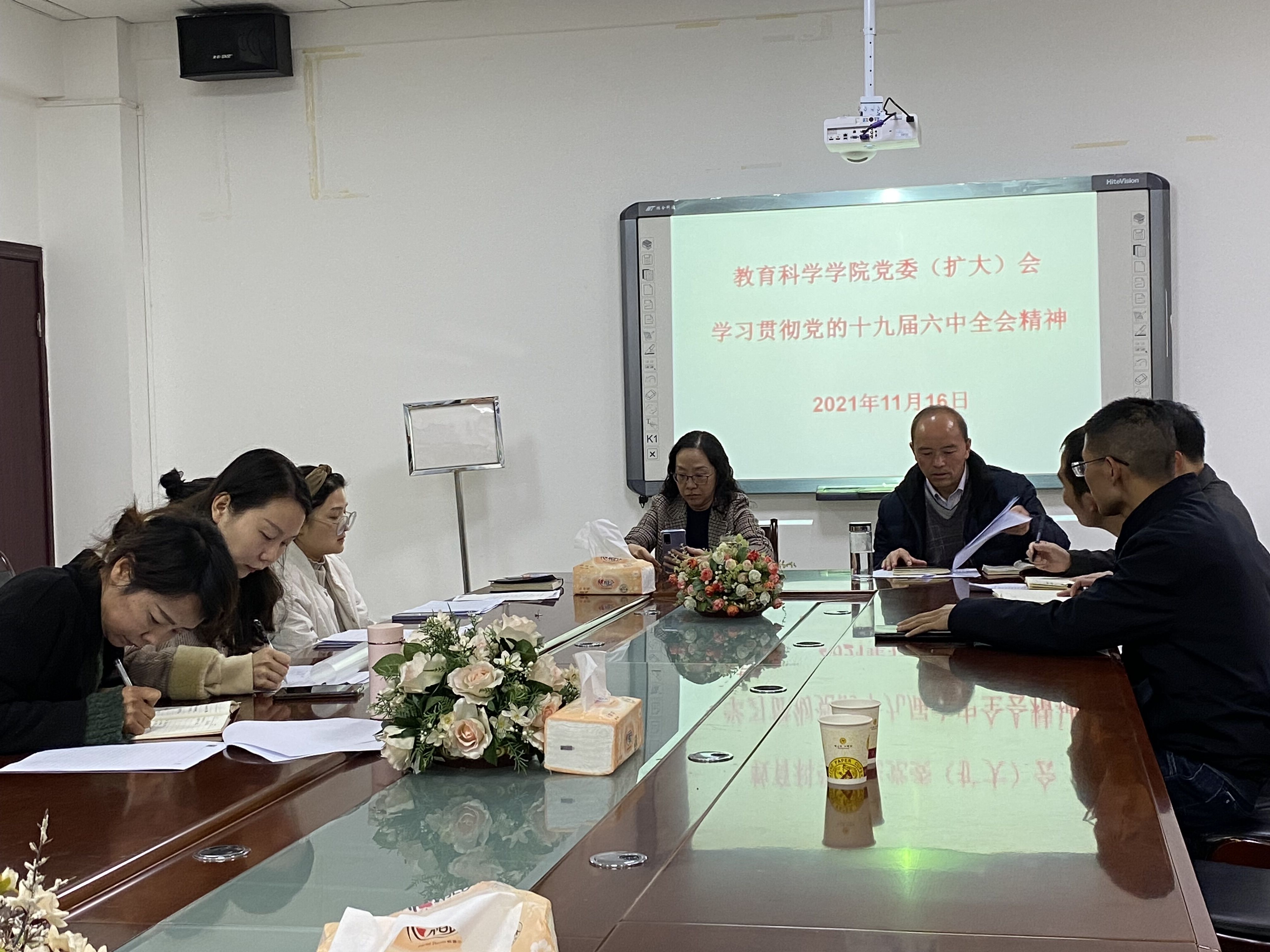11月16日上午,教育科学学院党委召开扩大会议,专题学习党的十九届六中全会精神。学院全体党委委员到场参会,各党支部书记、团委书记、各班辅导员列席会议。会议由学院党委书记彭祥友主持。