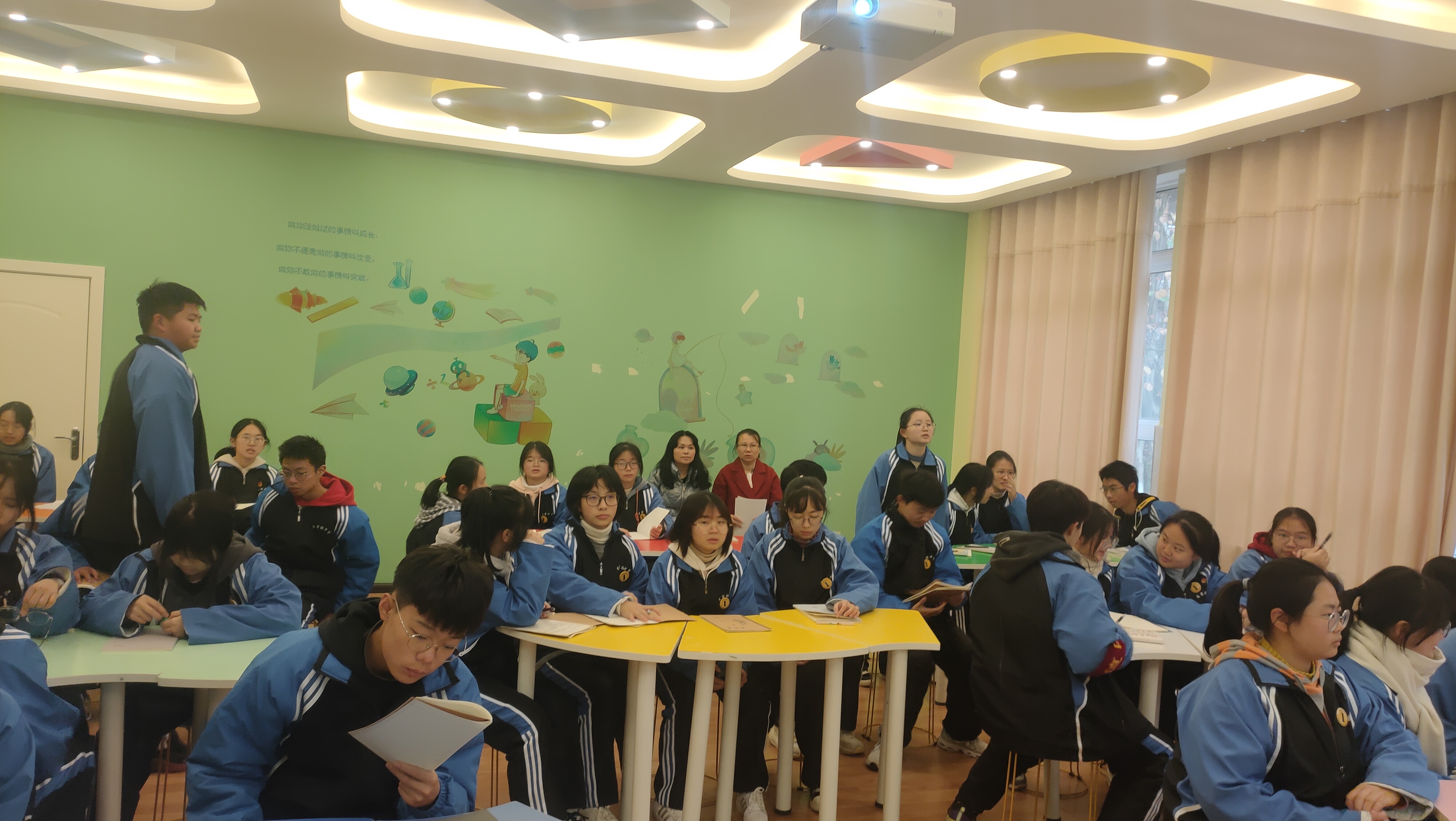 最后,夏卉芳与谢晓红一起听评了杨飞燕老师的高一(1)班的《心理健康课程》。