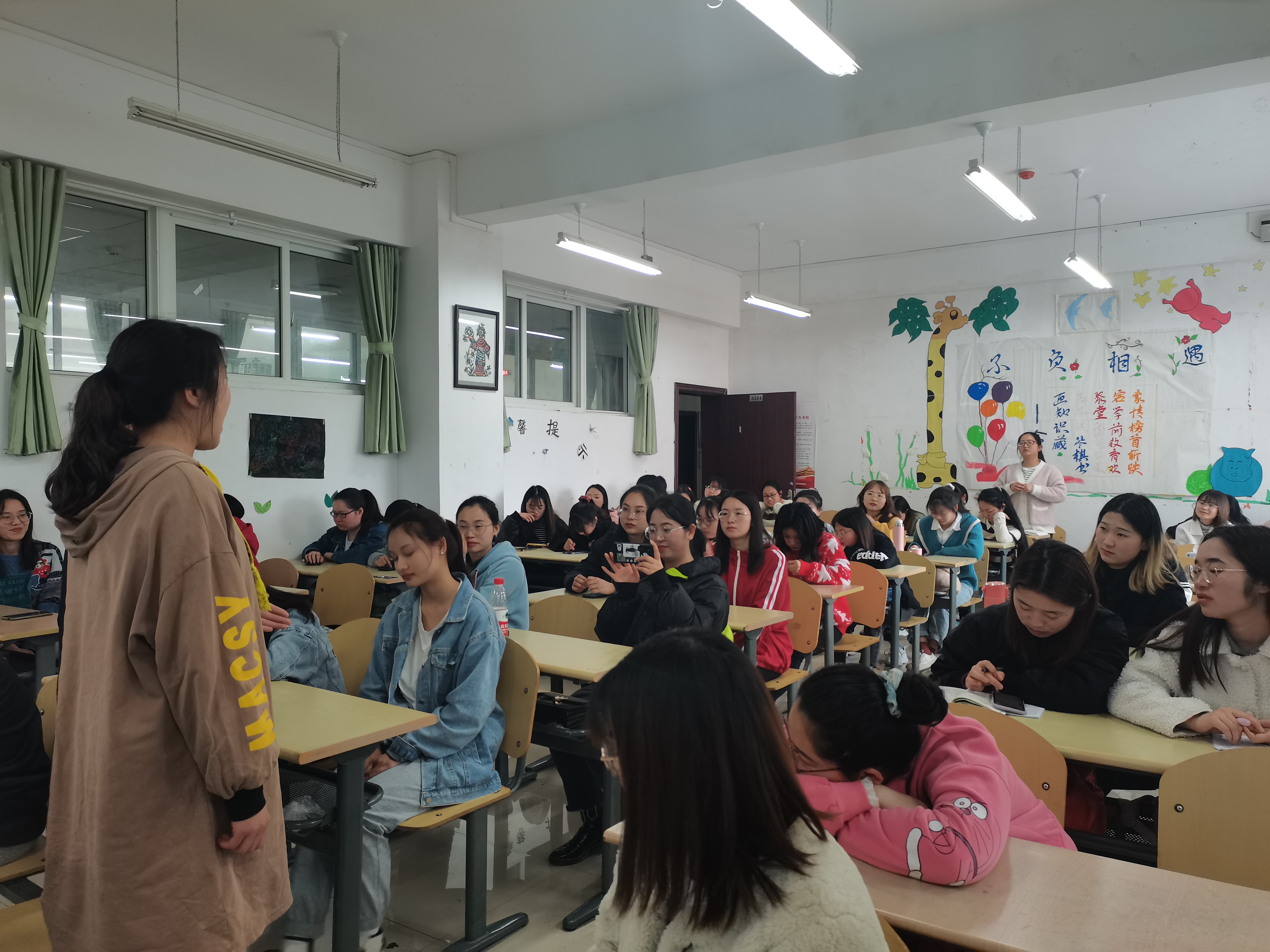在评选现场,各位候选人都表现得十分出色,2018级学前教育专业的同学在旁听后,向2017级同学咨询了专业实习的具体任务、阶段流程等相关内容。