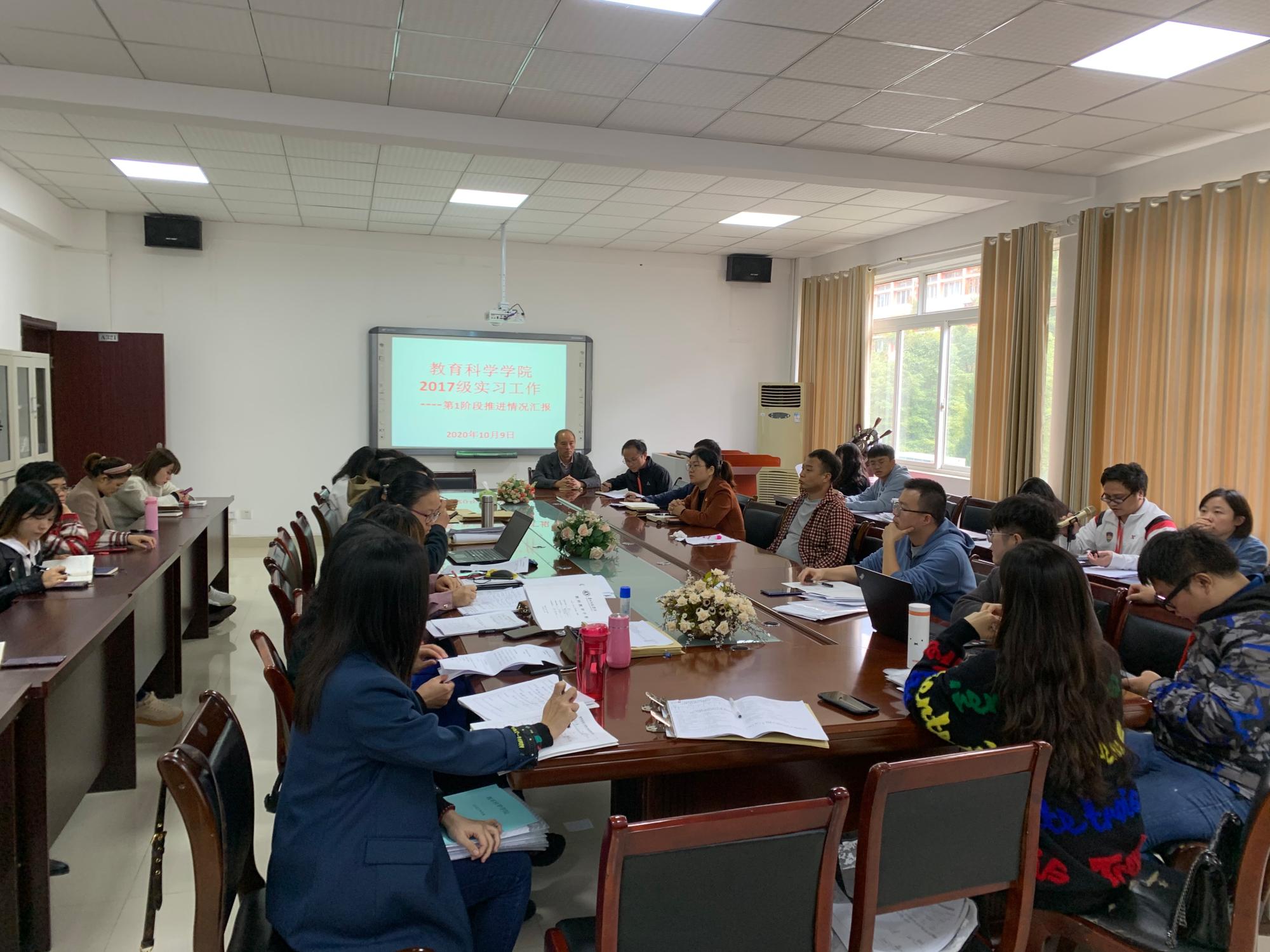为了保障学生实习效果,提升教师实习指导有效性,10月9日下午在逸夫楼322会议室,教育科学学院二级督导组组织召开2017级实习工作第一阶段推进情况汇报会,院党委书记彭祥友、院长刘红、党委副书记傅小芳、副院长黎平辉、副院长袁川以及各专业相关教师参加了此次会议。