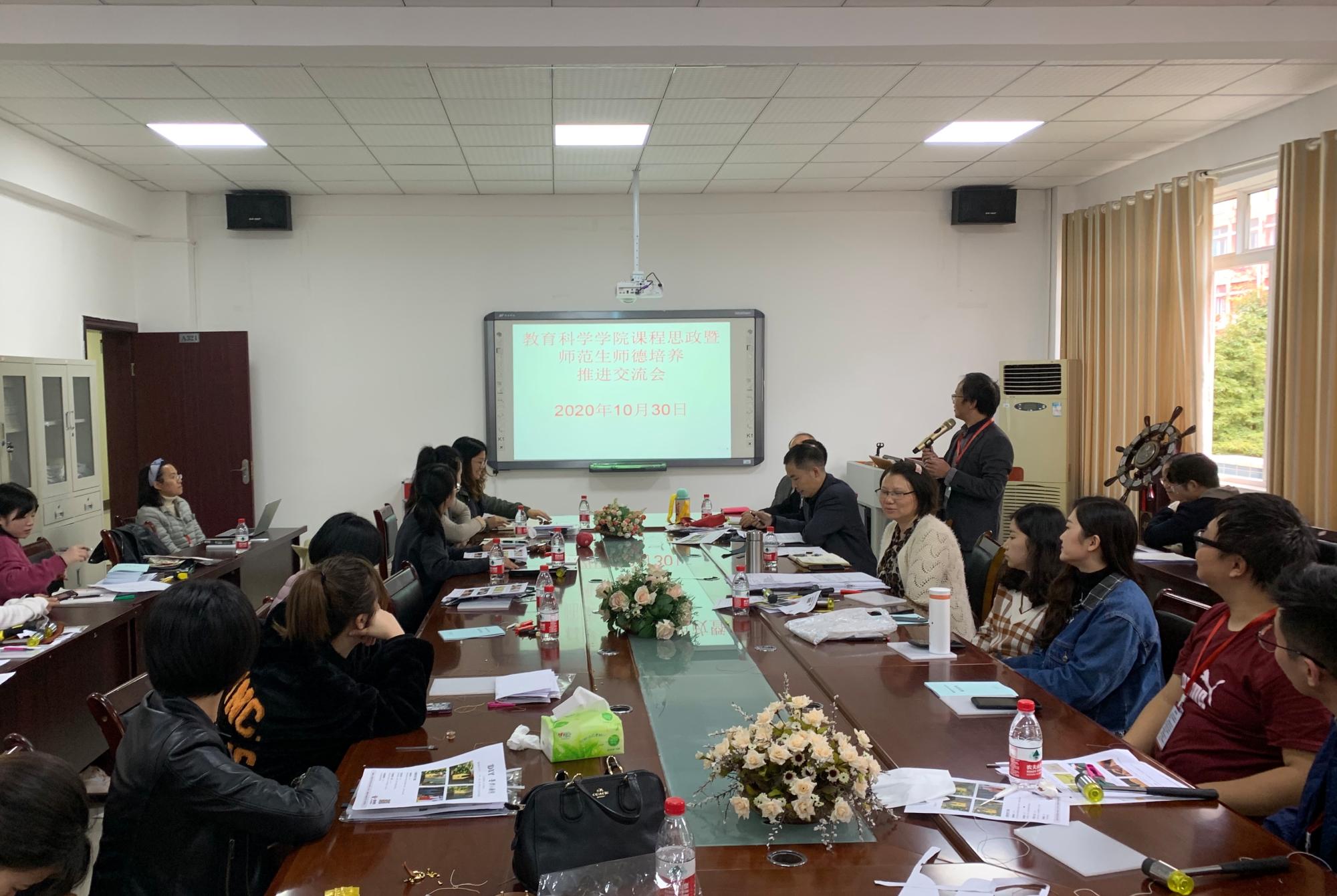 10月30日下午,教育科学学院课程思政暨师范生师德培养推进交流会在逸夫楼321会议室召开,院党委书记彭祥友、党委副书记傅小芳、副院长黎平辉、副院长袁川以及各系相关教师参加了此次会议。
