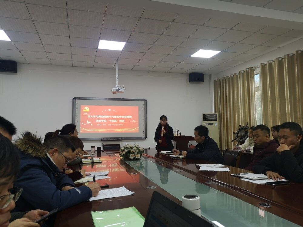 郭文从四个方面给大家讲解:党的十九届五中全会基本、党的十九届五中全会公报解读、以党的十九届五中全会精神为指引做好学校“十四五”规划、当前学校存在的主要问题。郭文讲授内容丰富,联系实际,充满激情,在讲到十三五取得的成就时列举贵州交通建设、脱贫攻坚疫情防控、生态建设等方面的成绩,大家听了精神振奋;在讲到“十四五”规划和二〇三五远景目标时候,大家非常开心,对未来充满期待。全体党员表示要高举中国特色社会主义伟大旗帜,在以习近平同志为核心的党中央领导下,勇于担当,努力学习,认真工作。郭文以党的十九届五中全会精神为指引,结合学校实际情况,为大家讲了学校“十四五”规划的制定建议,调要坚持立德树人根本任务,要为培养社会主义建设者和接班人不断提高自己的思想意识。同时指出了当前学校进一步明确办学定位进一步提高人才培养质量进一步增强服务地方经济社会发展能力进一步凝炼学校办学特色。