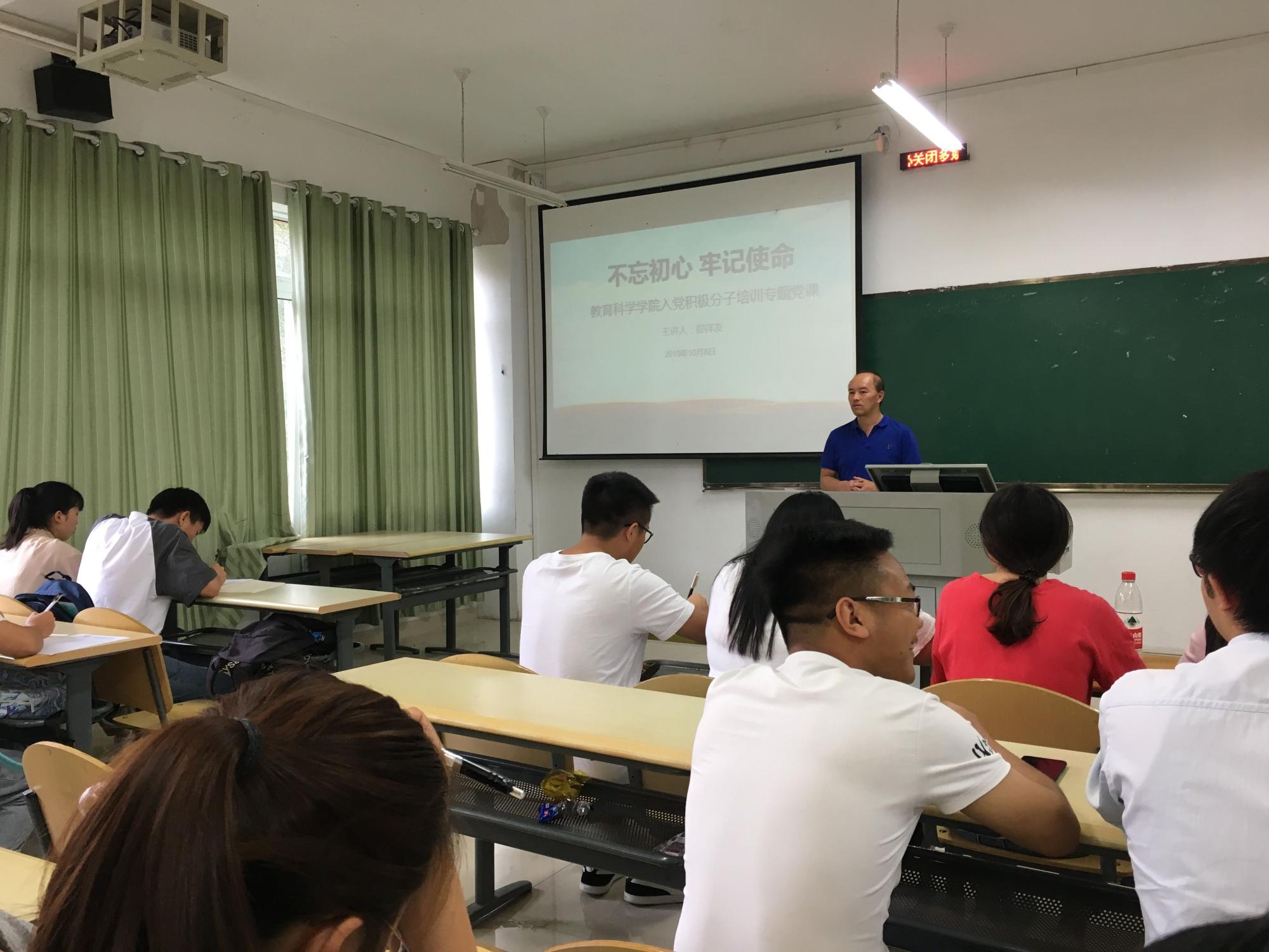 彭祥友为积极分子培训班学员带来了精彩的党课,不仅仅拉开了教育科学学院第48期入党积极分子培训的序幕,也为全体学员端正入党态度和动机建立了基础。