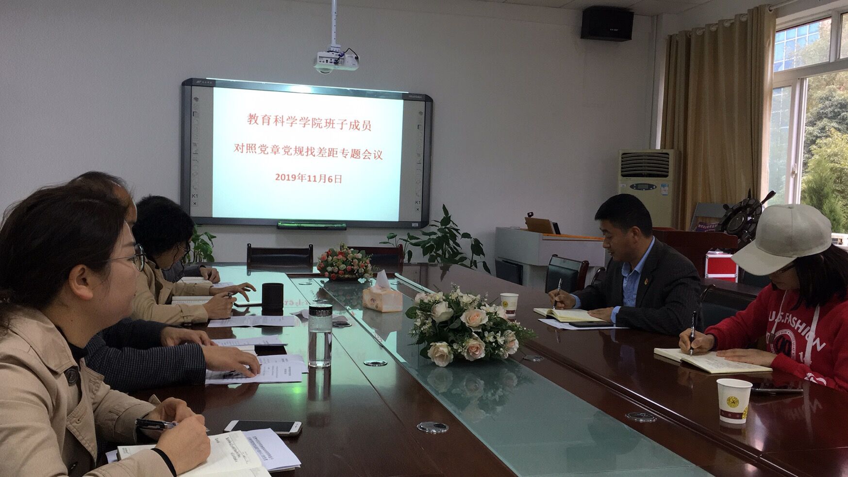 11月6日上午9:00,教育科学学院班子成员对照党章党规找差距专题会议在逸夫楼三楼会议室召开,全体班子成员到场参加,学校“不忘初心、牢记使命”主题教育办公室郝进欣、梁旭莉同志到场指导。会议由院党委书记彭祥友主持。