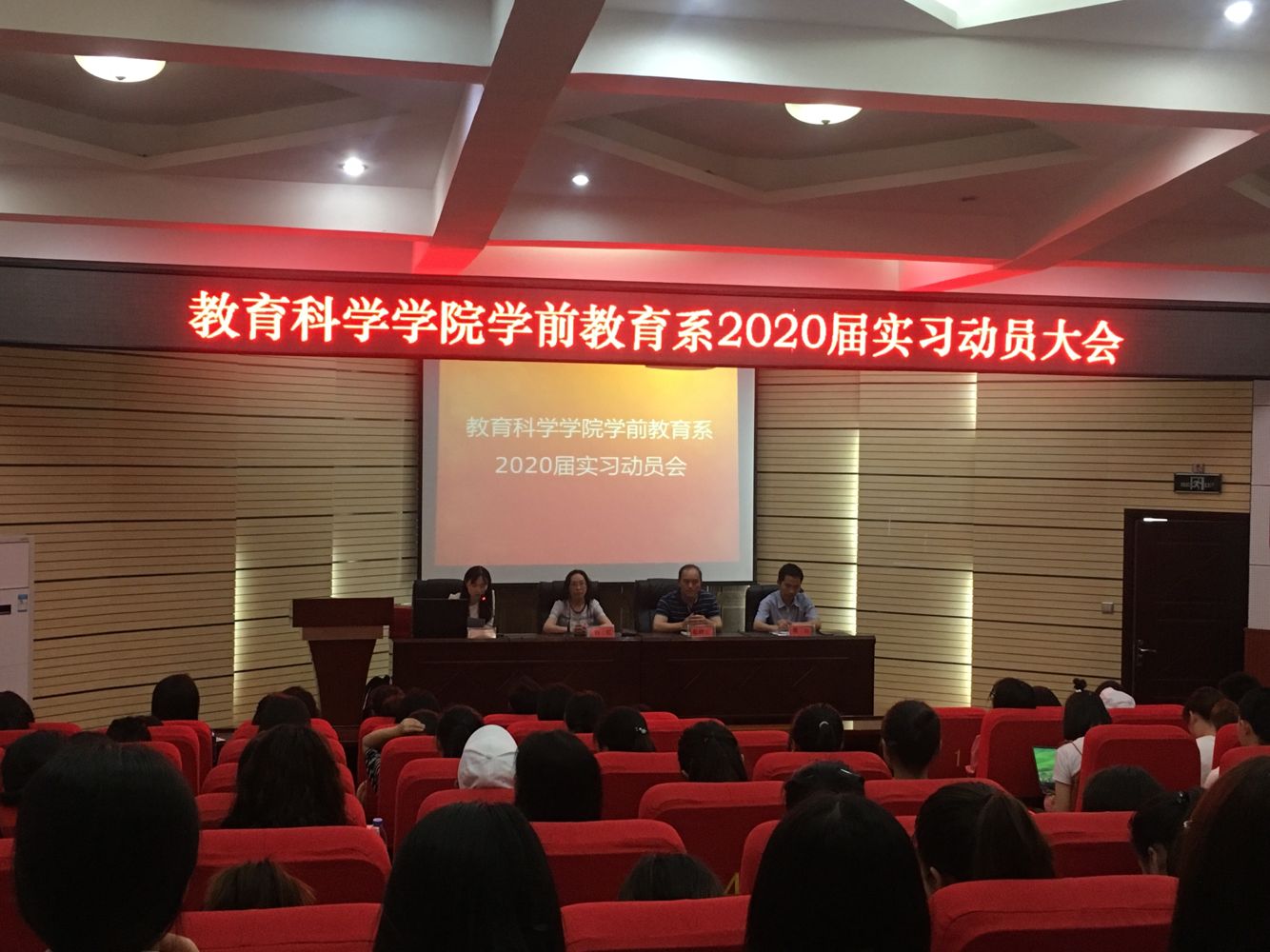 4月26日,教育科学学院2020届学前教育专业实习动员大会在宁静楼150召开。学院党总支书记彭祥友、院长刘红、副院长袁川、各实习指导老师以及15级优秀实习生代表、16级全体学前教育系实习生参加会议。会议由学前教育系主任娄小韵主持。