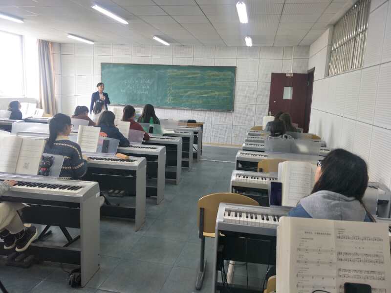 龙雪梅老师利用多媒体给学生上了一堂创意绘画与教学的内容,使学生的创意在绘画中得到展现,让学生的思维得到锻炼,特别深受同学们的欢迎。莫太极老师上的钢琴即兴伴奏课,以钢琴作为媒介,通过理论与实践的讲解,现场指导学生弹奏,并亲自给学生示范了小调式的歌曲伴奏,弹到副歌的时候引得学生一阵阵掌声。