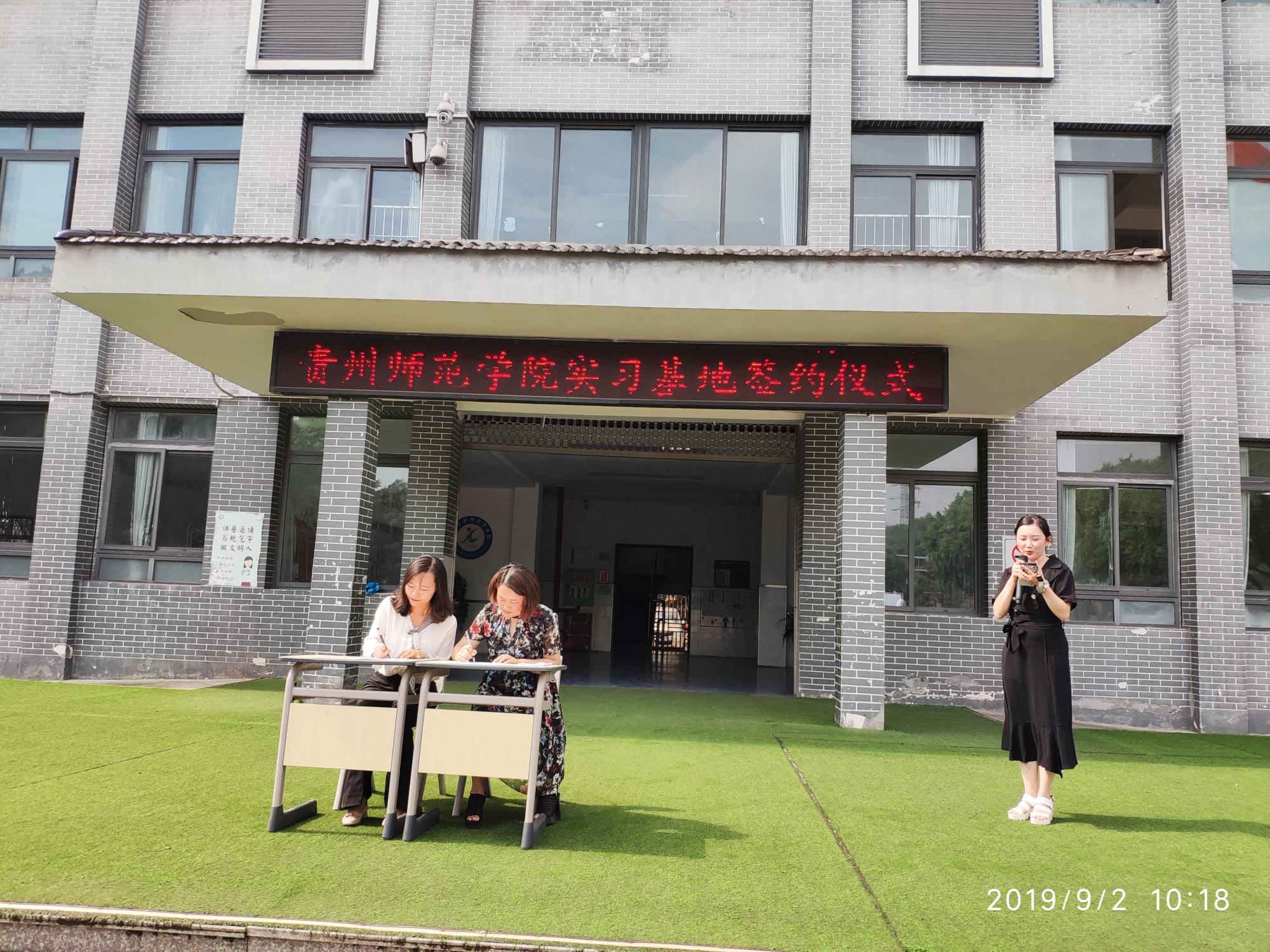 为促进高校与一线特殊教育学校的优势互补,实现资源共享和共同发展,加强校地合作与跨区域合作,2019年9月2日上午,贵州royal皇家88平台特殊教育系系主任杨娟赴重庆与重庆市永川区特殊教育学校校长蒋家裕、副校长伍斯梅,及该校教师代表共同商讨共建实践教学基地建设的具体内容和条目,并达成共识,双方签订合作协议并举行授牌仪式。
