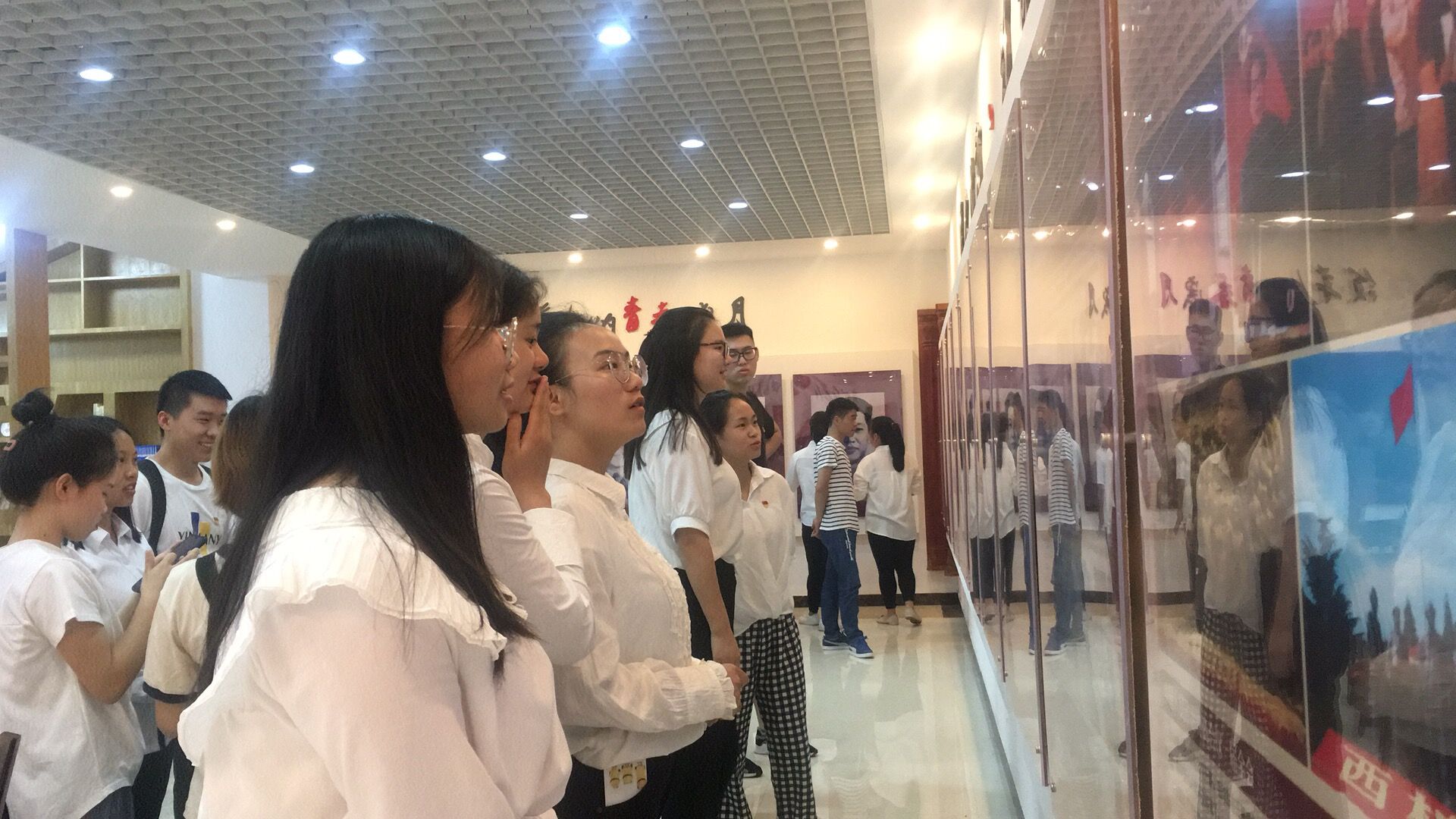 首先,全体党员参观了党员教育基地;其次,申苒对新发展的党员提出要求,希望同学们认真学习党规党纪及党的先进理论,牢记党员权利和义务,提高自身的思想觉悟,争当先锋模范;牢记初心,爱国爱党,更好的投入到学习生活中,全心全意为同学服务;接着,申苒为新发展的党员代表佩戴党徽;最后,34名新发展党员在申苒带领下,面向党旗庄严宣誓。