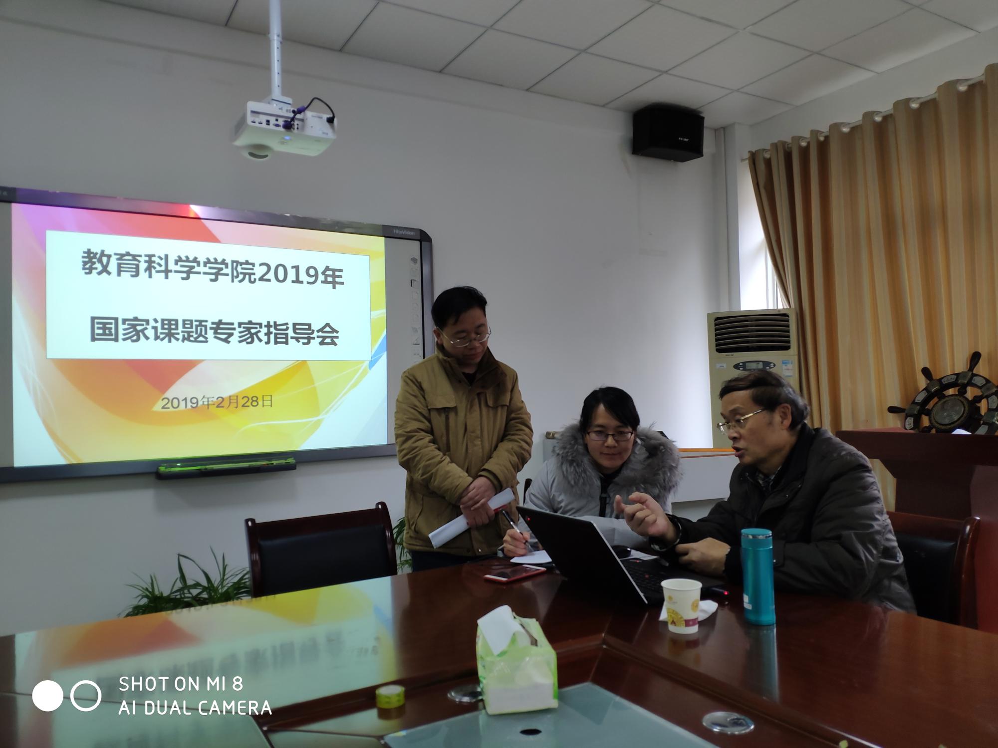 为做好国家项目申报工作,2019年2月28日上午9点,教育科学学院聘请了贵州省社会科学学院史昭乐教授、财经大学肖庆华教授到我院指导开展国家项目申报书修改工作。