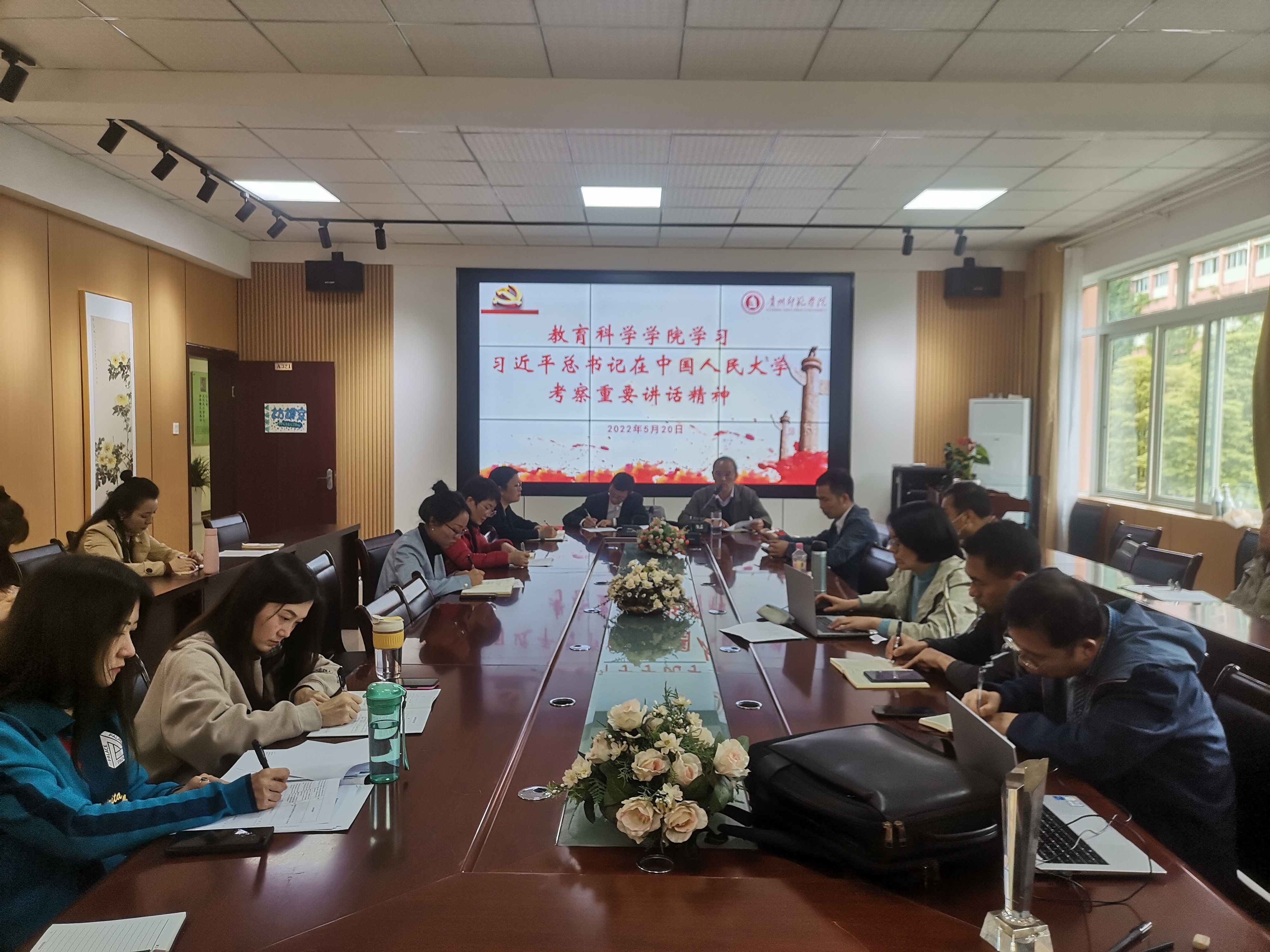 5月20日下午,教育科学学院在学院会议室组织全体教职工认真学习、深刻领会、全面贯彻习近平总书记在中国人民大学考察时重要讲话精神。