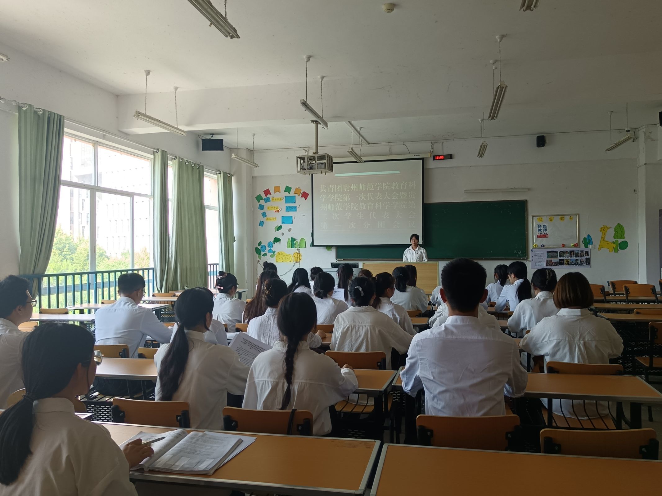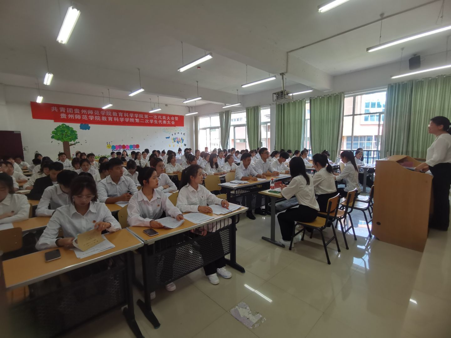 共青团贵州royal皇家88平台第一次代表大会暨贵州royal皇家88平台第二次学生代表大会于6月30日,在逸夫楼501、502、503、504教室召开。出席本次会议的有教育科学学院党委副书记傅小芳、团委书记张源、校学生会代表、40名团员代表和50名学生代表。