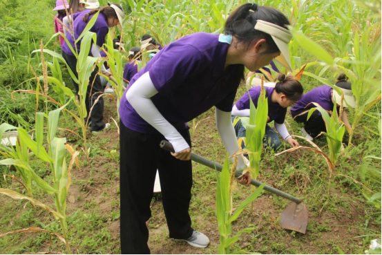 早上七点,志愿者们列队,踩着晨光出发。路途虽远,却因心怀信念,即使负重,也不觉劳累。到达村长家,小分队变为两组来分别进行作业。一组进行当地居民的家访调查,二组帮助村民除草与施肥。