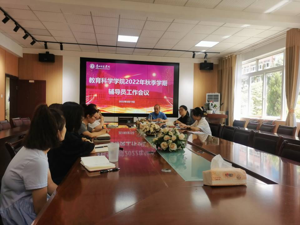 8月19日下午,教育科学学院在逸夫楼321会议室召开了2022年秋季学期辅导员工作会议。学院党委书记彭祥友、副书记傅小芳、全体专兼职辅导员参加了此次会议。