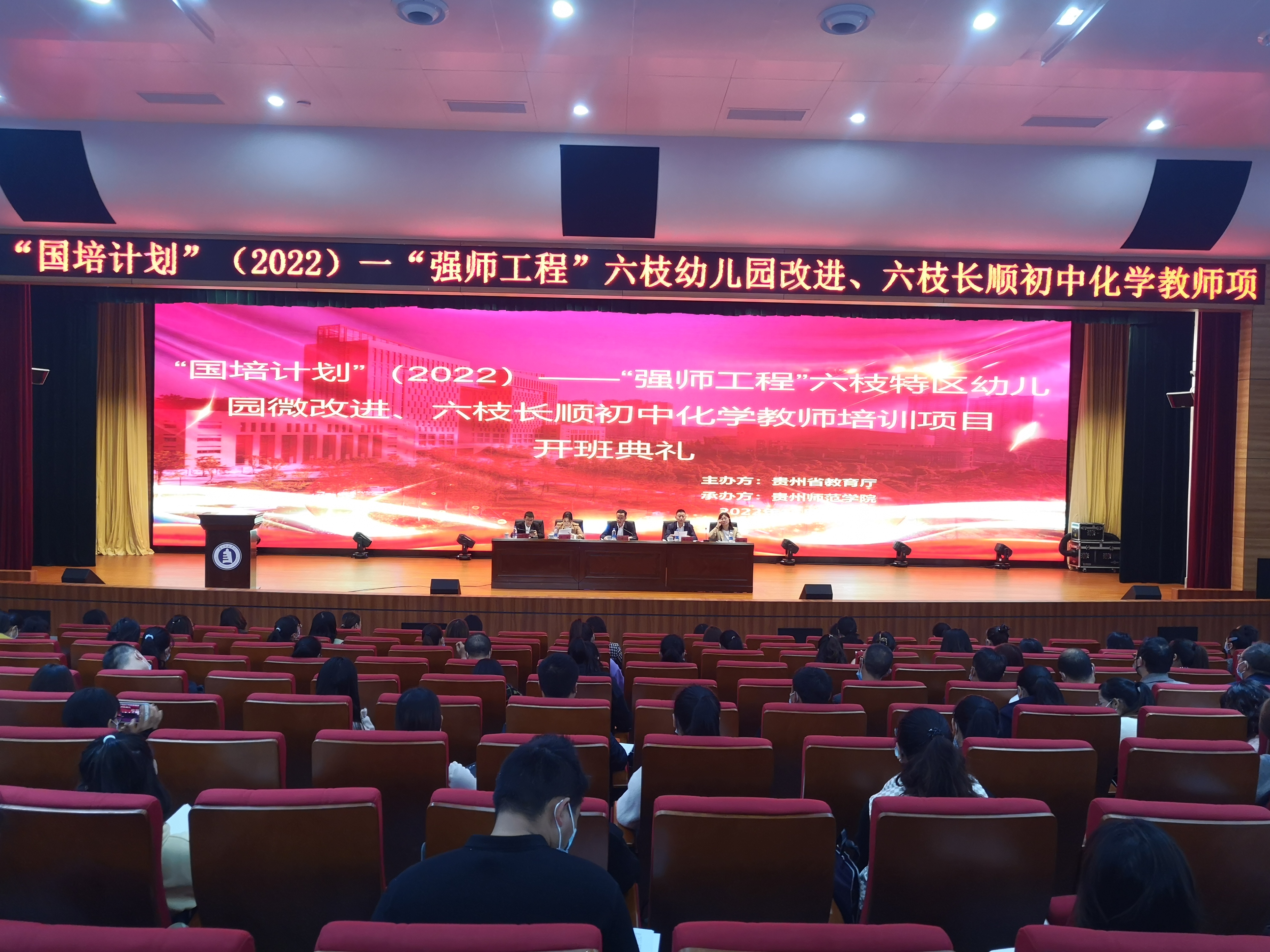 2022年11月12日上午8:30-9:00,“国培计划(2022)”强师工程六枝特区、长顺县骨干教师培训项目开班典礼在贵州师范学院综合实训楼一楼报告厅举行。贵州师范学院党委副书记熊世桓、六枝特区教育局副局长周定元出席开班典礼,学校教师工作部部长王茜、化学与材料学院党委书记何毅、教育科学学院院长宋万琚、培训班班主任及177名学员参加了开班典礼,开班典礼由教育科学学院院长宋万琚主持。