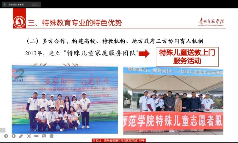 娄小韵对学前教育的课程设置特点,通识教育课程和专业教育课程进行介绍,导师制、个性化、多元化等培养特色进行讲解,并祝福同学们在师院乘风破浪、展翅高飞;朱紫桥对特殊教育专业的发展情况和学生培养情况进行介绍,就培养方案中涉及的指导思想、培养目标、毕业要求、课程结构及学分修读要求等问题对特殊教育专业的培养计划进行解读,同时期待2022级新同学顺利完成学业,攀高行马慧慧为同学们介绍了艺术教育专业的发展前景、培养模式、建设情况以及课程结构设置,他特别对艺术教育人才培养特色进行详细讲解,期待同学们拥有强烈的好奇心和丰富的想象力,激励大家尽早明确目标,努力成为卓越人才倪磊应用心理学专业的修读指南进行讲解以及专业的就业内容、方向进行介绍。课程主要分为通识教育模块、专业教育模块,倪磊对专业教育模块的课程进行详细的介绍,希望新生们认真学习各类课程同时重视实习方面的内容为未来就业夯实基础。