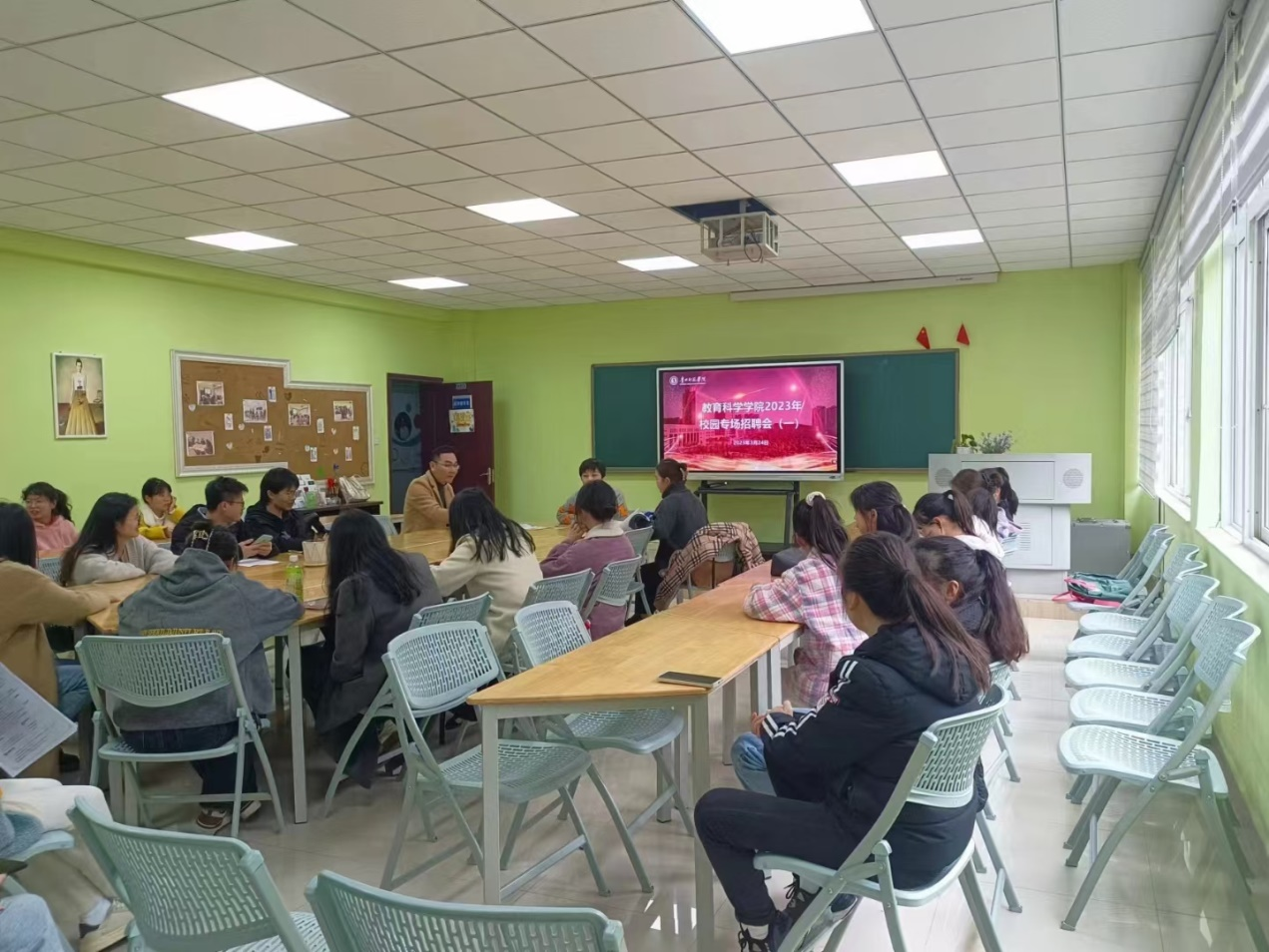 2023年3月24日,教育科学学院2023届毕业生现场招聘会在逸夫楼心理咨询中心215教室召开。此次招聘会邀请到了贵阳市常青藤儿童之家的董事长郑飞一行3人到我院宣讲。此次招聘会由学院辅导员鲁蓓蓓主持。