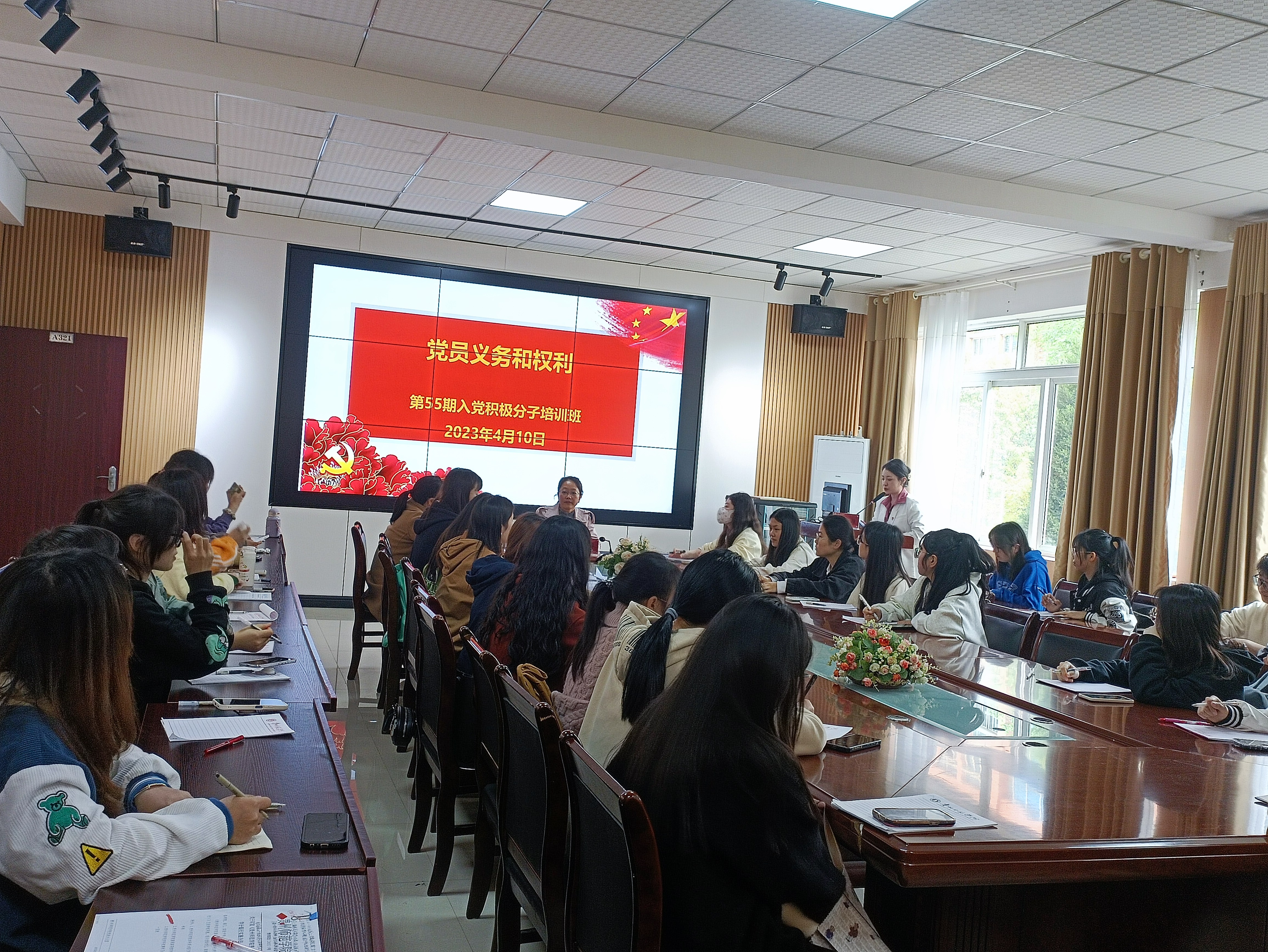 4月10日,教育科学学院在学院会议室开展第55期入党积极分子培训班开班典礼暨第一次专题党课。学院党委书记肖湘萍、学院党委副书记傅小芳、学院学生党支部书记张源以及全体入党积极分子参加了开班典礼。