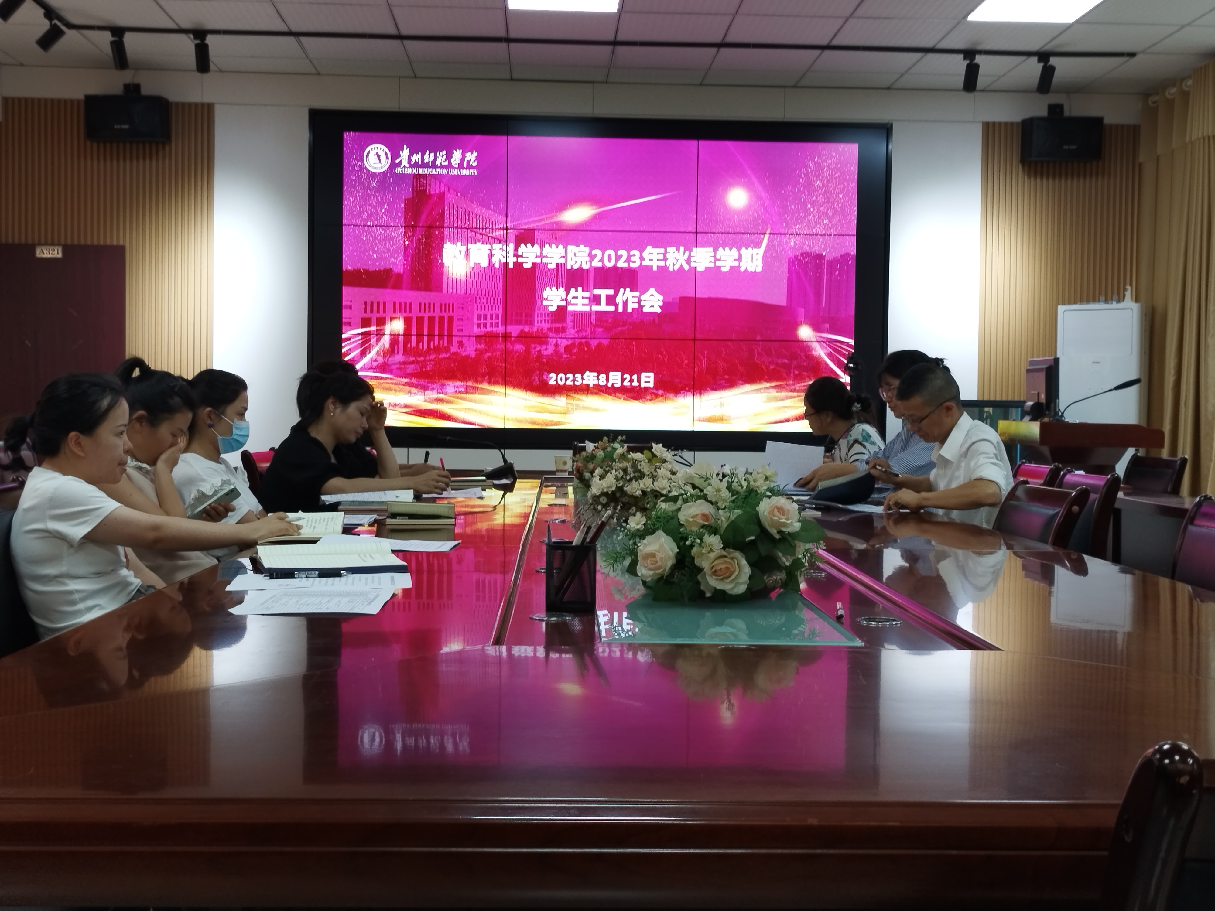 为了更好的开展新学期的学生工作,2023年8月21日,教育科学学院在逸夫楼321学院会议室召开了2023年秋季学期学生工作会。出席会议的人员有学院党委书记肖湘萍、院长宋万琚、党委副书记傅小芳以及学院全体专兼职辅导员。