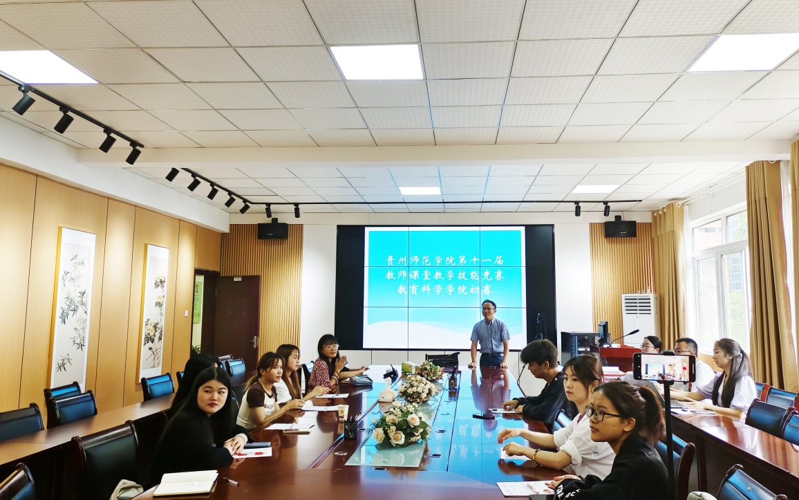 2023年8月25日,教育科学学院举行了贵州师范学院第十一届教师教学技能竞赛院赛,杨曼、罗凯、刘晓红、饶畅四名老师参加了比赛。比赛邀请了校级督导张莹、退休专家李建年、特殊教育专业学科带头人吴晓英、公共心理学教研室主任刘婧和艺术教育专业系主任马慧慧担任院赛的评委。四位参赛老师呈现了四节精彩纷呈、各具特色的课堂:杨曼老师用对比的方法解析了“惩罚与强化”的区别;罗凯老师深入浅出的剖析了“艺术与治疗”的联系;刘晓红老师用贴近学生生活的实例生动地讲授了“学习动力”的类型;饶畅老师用结合自身,让学生全方位了解了“教师”这一职业的角色特点。专家评委们就各位老师的课堂进行了鞭辟入里的点评,最终推选出刘晓红和饶畅两位老师代表教科院参加校级比赛。