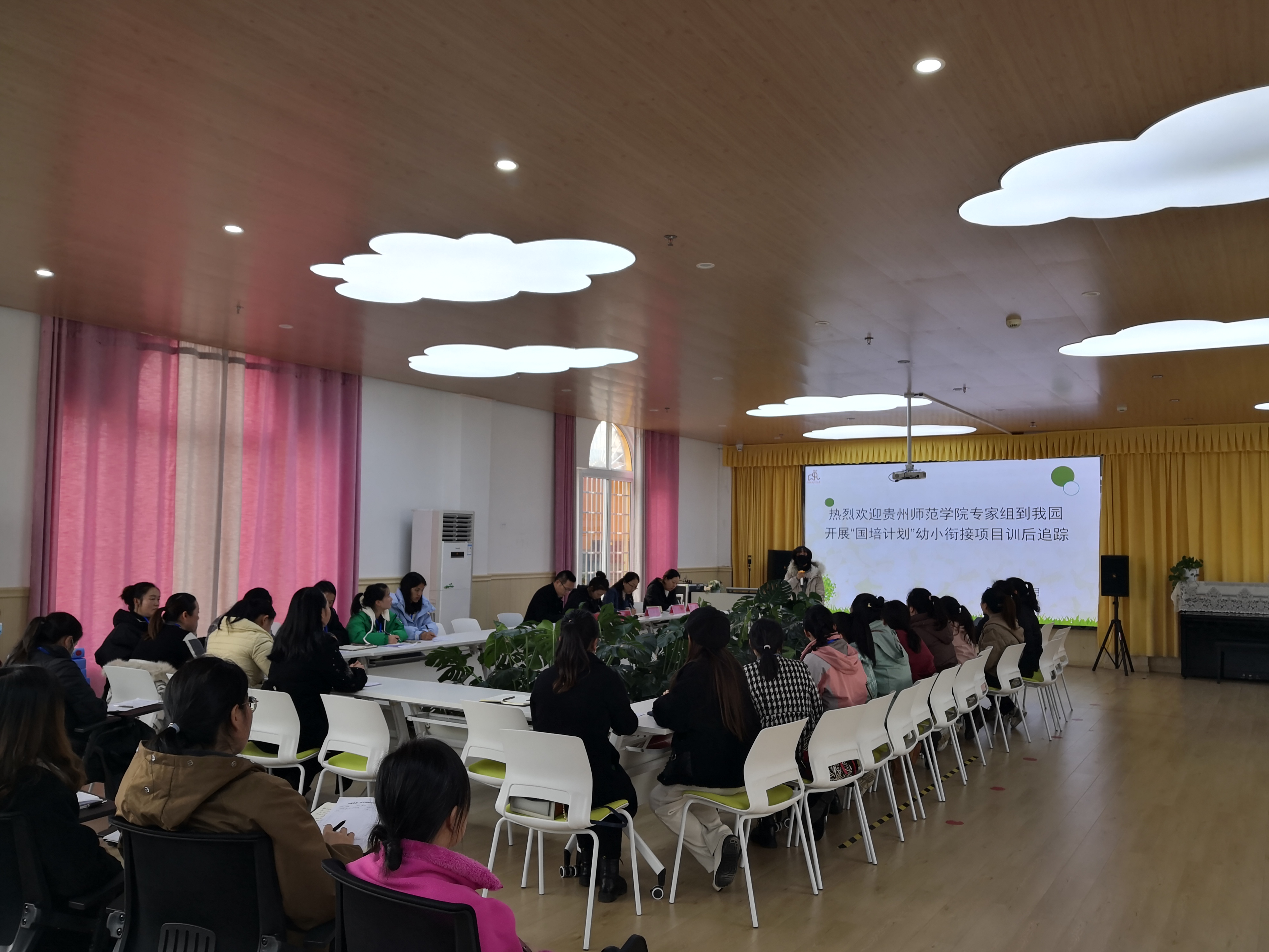 首先,指导团队聆听了丹寨县第二实验幼儿园韩瑶园长介绍幼儿园发展现状。接着,园方介绍了省级课题“小幼连贯制学校探索幼小衔接中“双向衔接”的实践研究”项目基本情况,展示了近年幼儿园开展“幼小衔接”的历程,幼小衔接开展的具体做法及成效。专家指导团队充分肯定了园方在“幼小衔接”方面的经验,如小学、家园、社区、幼儿园共同建构幼小衔接生态系统‘小学-幼儿园联合观摩、教研,整班移交等做法,但幼儿园需要进一步凝练教育成果,梳理与建设幼小衔接资源包。同时,明确幼小双向衔接的主体,加强小学方面的衔接的力度,明确衔接目标,以当地幼小衔接的实际问题、迫切问题为抓手,与小学共同制定双向衔接目标,探索有效衔接途径。此外,想办法提高小学开展幼小衔接的课程改革积极性,加强行政引领,以试点开展多样化的衔接工作,助推学前和小学的教育改革。