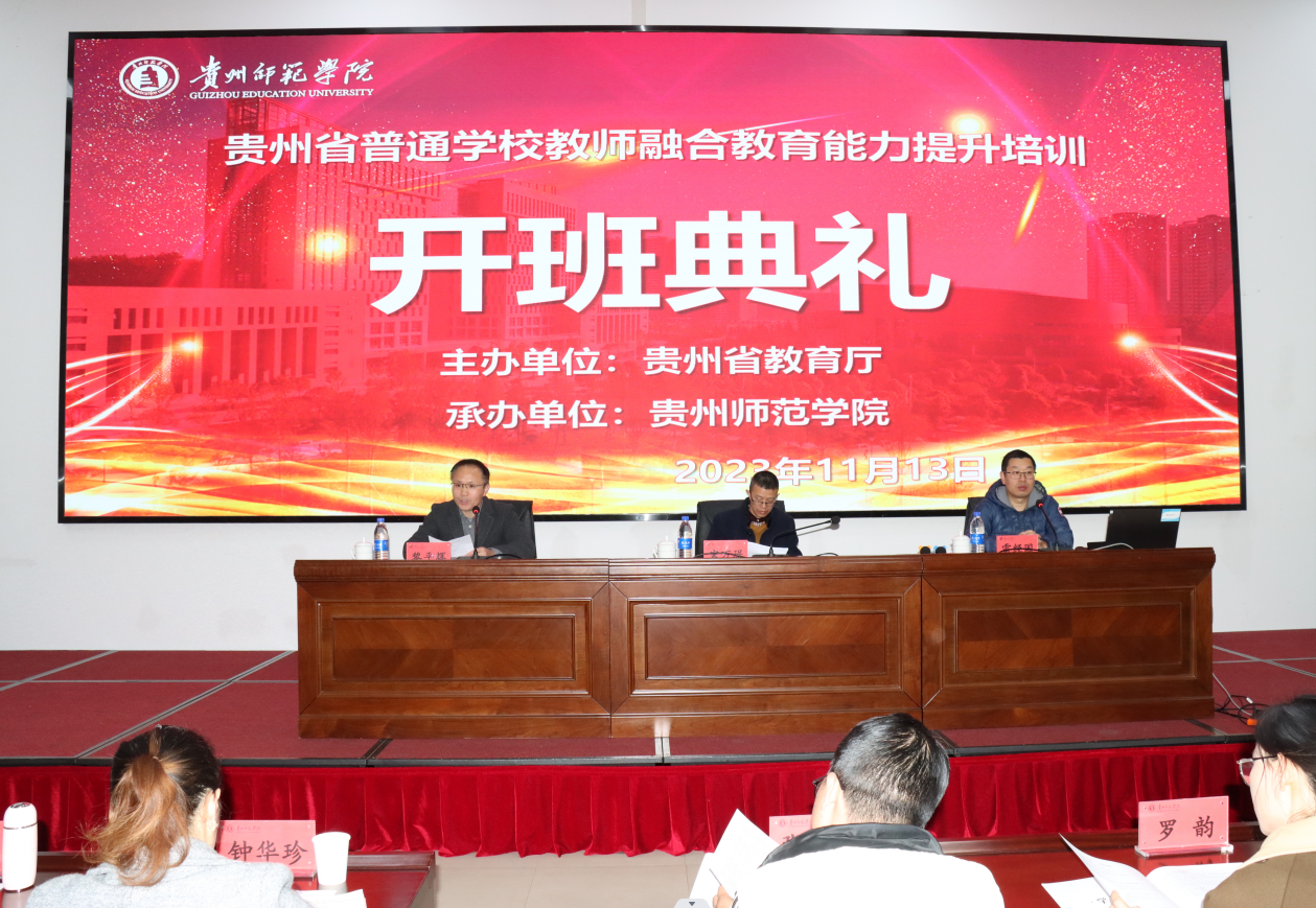 2023年11月13日,贵州省普通学校教师融合教育能力提升培训开班典礼在我校举行。教育科学学院宋万琚院长、黎平辉副院长、特教系部分老师以及全体参训学员参加典礼,会议由特殊教育系系主任雷经国副教授主持。