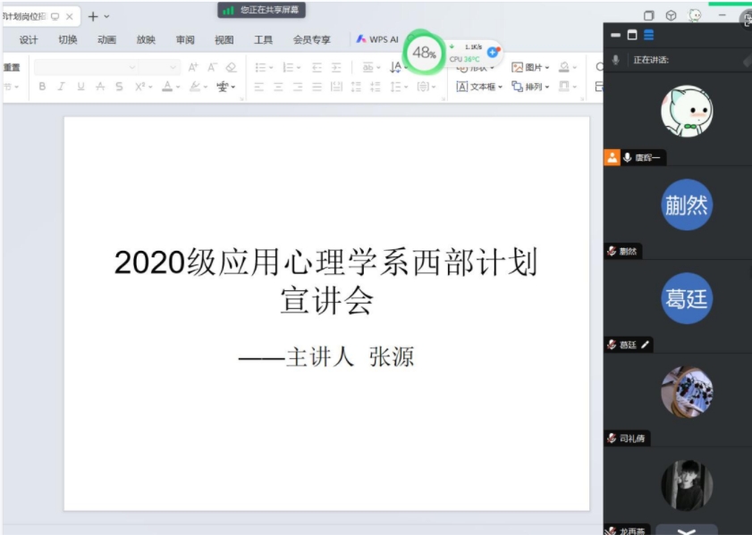 为鼓励同学们弘扬志愿者精神积极投身西部建设,树立正确的就业观,帮助我院学子及时了解大学生志愿服务西部计划政策。4月8日,教育科学学院团委书记张源在线上为20级应用心理学班学生开展了西部计划宣讲会。宣讲会由张源主持。