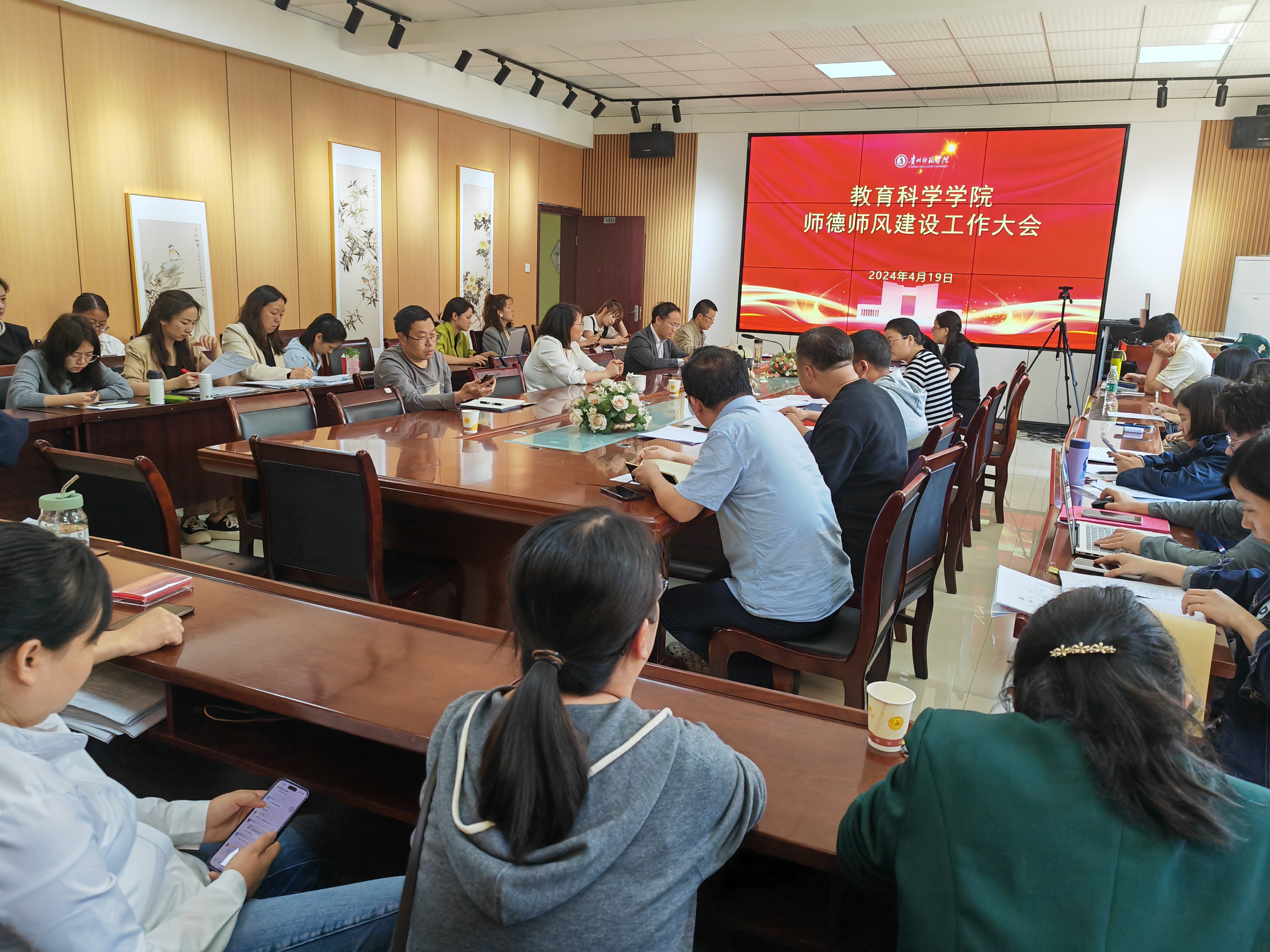 为进一步巩固和深化学院师德师风建设成效,切实提高教师队伍的政治思想素质和职业道德水平,提升师德师风建设水平,4月19日,教育科学学院召开了2024年师德师风建设工作大会。会议由党委书记肖湘萍主持,全体教职工参加会议。