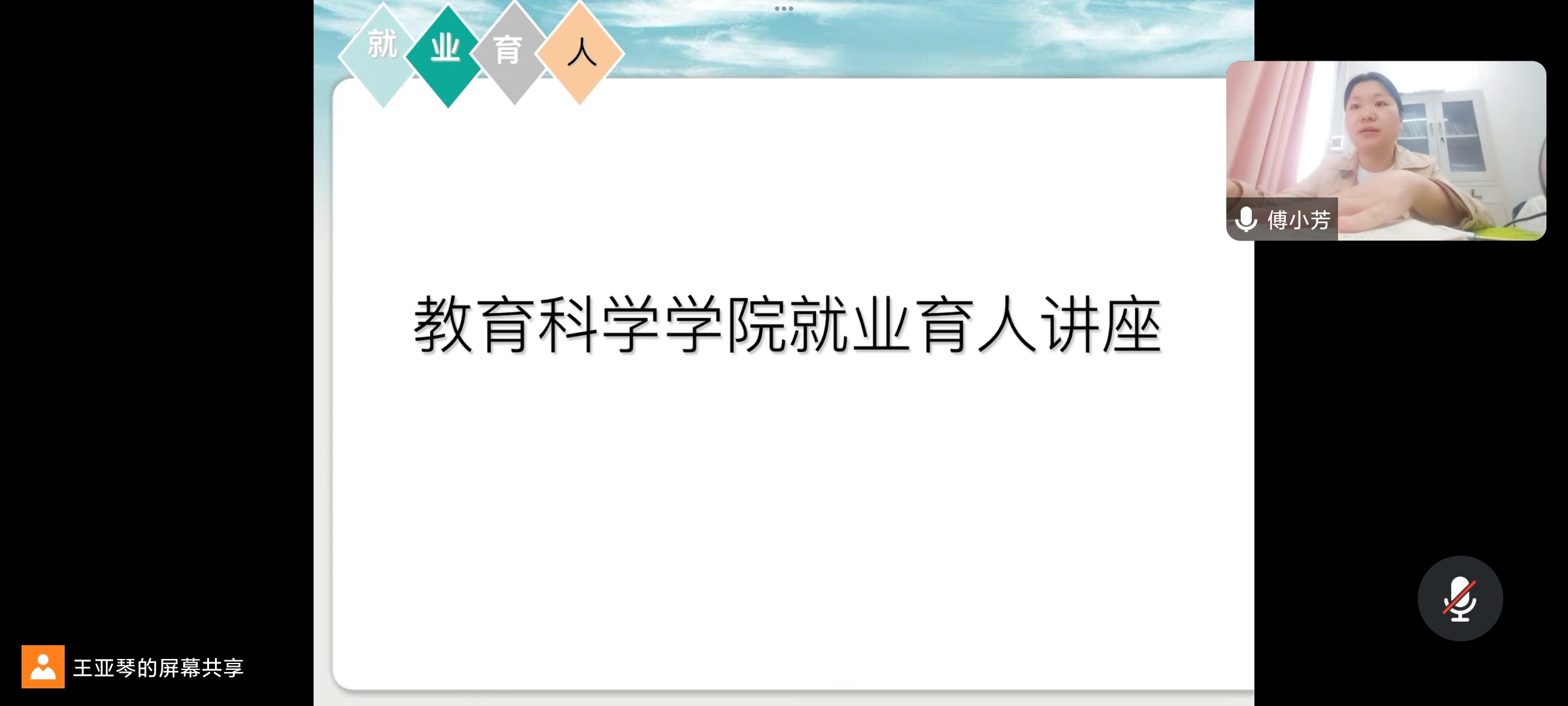 5月7日,教育科学学院党委副书记傅小芳在腾讯会议为20级学前教育专升本班全体学生开展了就业育人讲座。讲座由班长王亚琴主持,全班同学线上聆听。