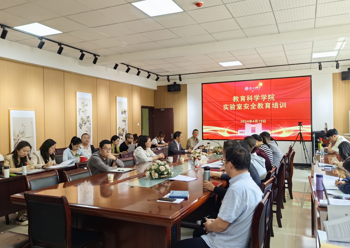 2024年4月19日下午,教育科学学院在学院会议室举办实验室安全培训。本次培训由院长宋万琚主讲,全院教职工参加了本次培训。