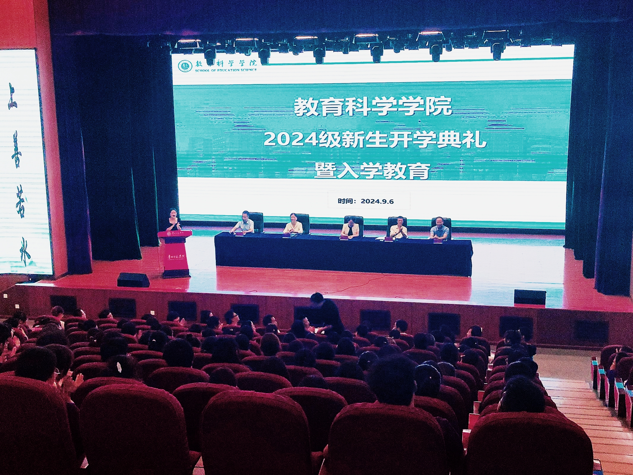 9月6日下午,教育科学学院师生齐聚逸夫楼演播厅,本次会议的参加人员有学院领导、全院教职工代表以及2024级全体新生,在辅导员鲁蓓蓓的主持下新生开学典礼暨入学正式拉开帷幕。