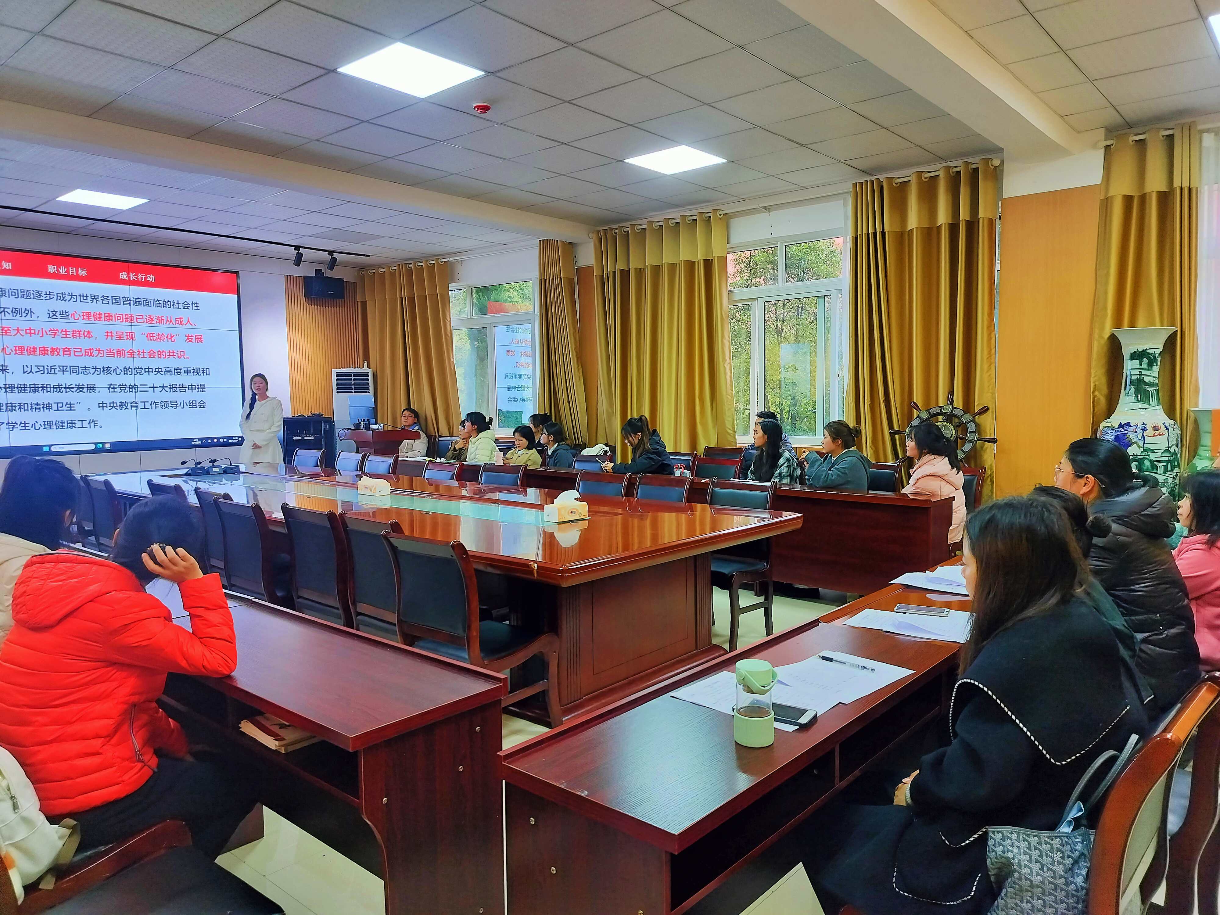 首先,参赛选手们早早地来到会议室进行比赛前的准备。比赛在紧张的氛围中拉开帷幕。在精彩的展示环节中,同学们依次向大家介绍了自己对未来职业生涯的规划与展望。有的同学志在投身教育事业,以创新教学方法为目标,阐述了成为优秀教师的坚定决心;有的则聚焦心理师领域,展现出对未来职业发展的敏锐洞察与无限憧憬。然而,每位选手都结合自身的专业特点和个人优势,制定了切实可行的职业目标和发展路径,充分展现出参赛选手们的专业素养和职业规划能力。接着,评委们根据参赛选手的职业目标、学习实践动力、动态调整等多方面进行了综合评分。参赛选手们以其详尽的职业规划、清晰的目标定位和出色的表达能力赢得了评委们的一致好评。最后,傅小芳对此次职业生涯规划大赛作出总结,表达了她对教育科学学院学子们的殷切期望。