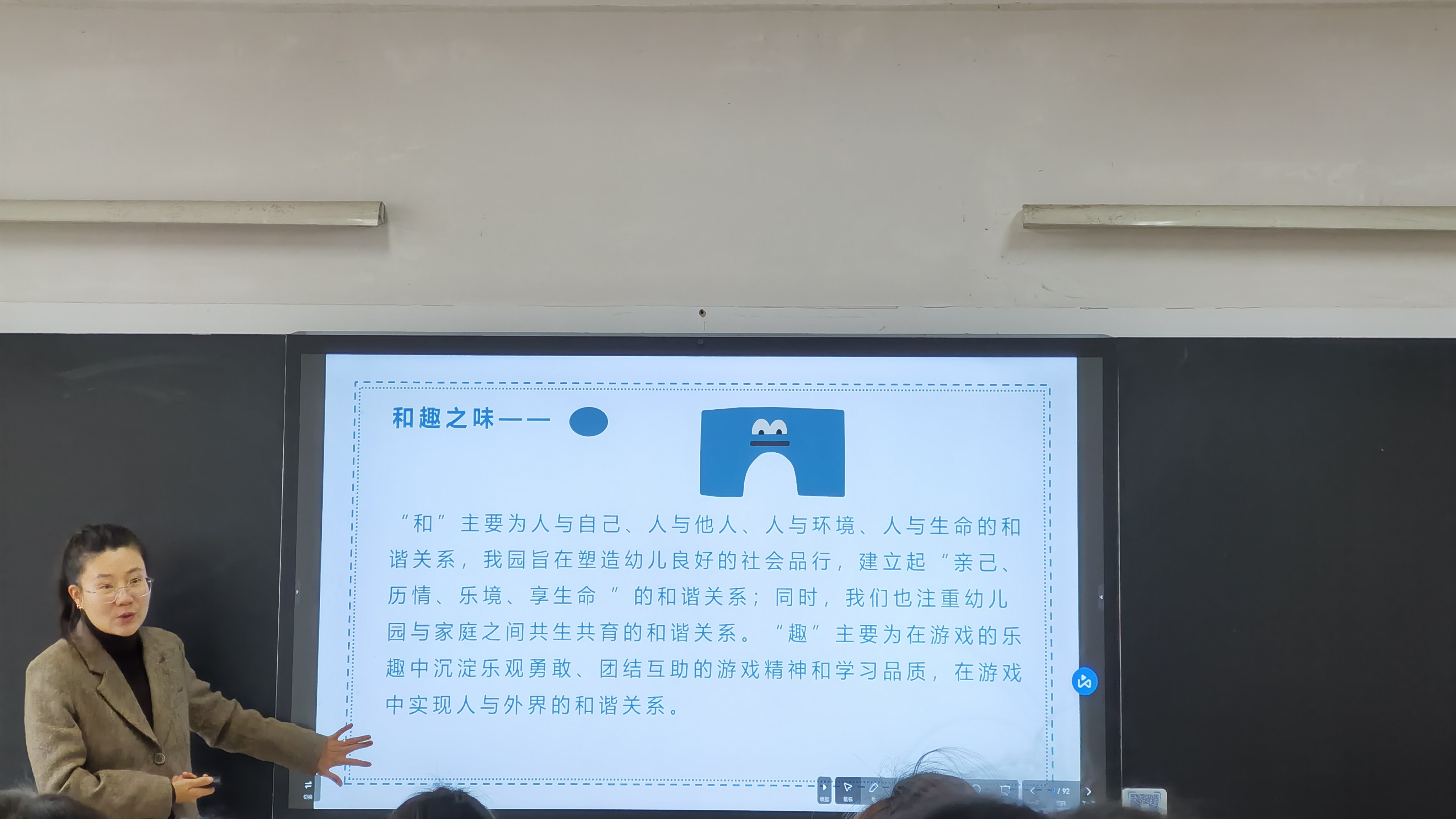 分享结束后,郑玉莲教授进行了总结点评,肯定了此次分享对同学们专业成长的重要意义,鼓励同学们认真吸收所学知识,为未来投身学前教育事业奠定坚实基础。此次活动不仅为同学们提供了宝贵的学习机会,也加强了高校与幼儿园之间的交流合作,有助于推动学前教育领域的教学研究与实践探索不断向前发展。