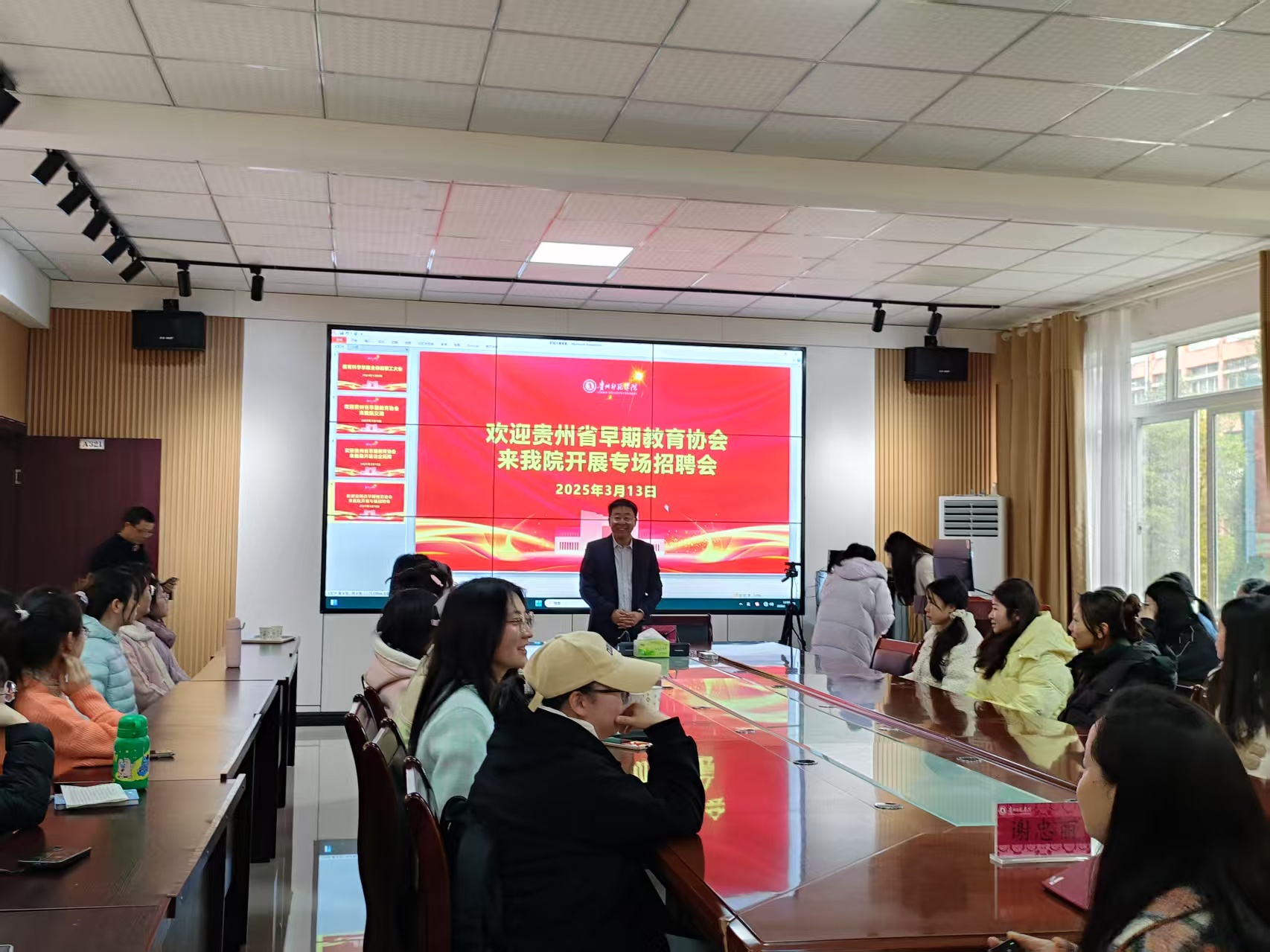 为通过行业协会的力量,推动贵州省托育服务行业的规范化、专业化发展,为行业培养更多高素质的专业人才,2025年3月13日,贵州省托育服务行业协会到贵州royal皇家88平台举行以“行业协会助力托育服务的高质量发展”为主题的招聘会。此次会议在逸夫楼A321会议室举行。学院党委副书记傅小芳、21级学前教育专业学生参加了此次招聘会。
