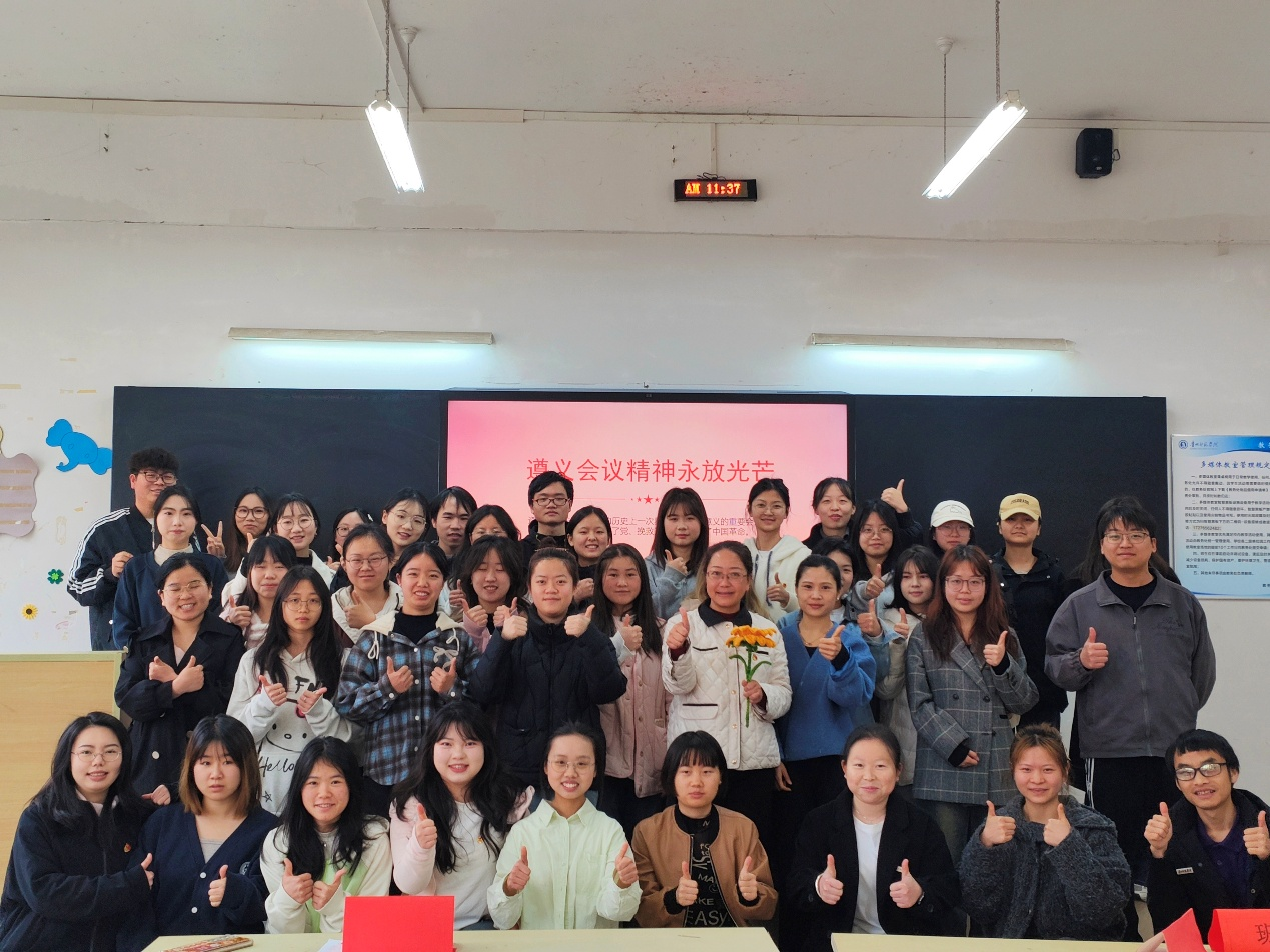 为纪念遵义会议召开90 周年暨习近平总书记“运用好遵义会议历史经验,让遵义会议精神永放光芒”重要指示10周年,深入贯彻党的二十大、二十届三中全会精神,2025年3月28日,教育科学学院 2022级学前教育班举办了一场以 “遵义会议精神永放光芒”为主题的班会,为同学们带来了一场生动且深刻的精神洗礼。学院党委书记肖湘萍担任主讲人,引导当代大学生从遵义会议精神中汲取力量,助力个人成长与学业进步。