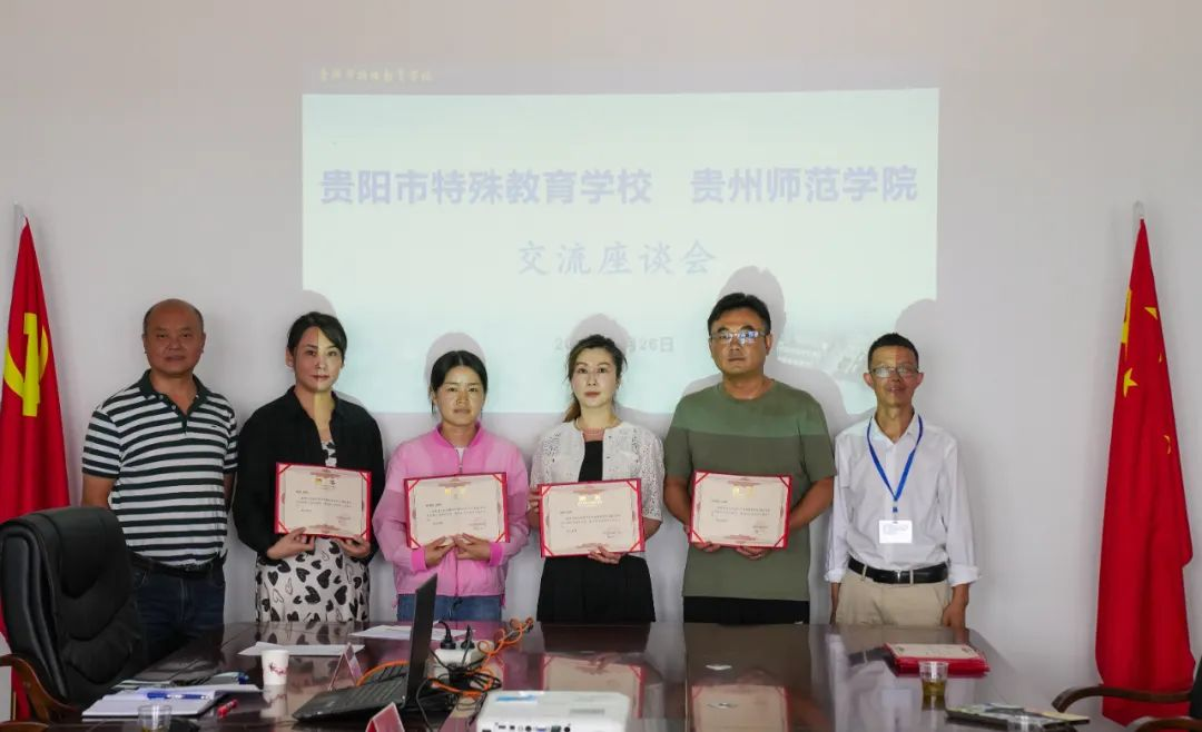 宋万琚院长一行在贵阳市特殊教育学校谭兆清书记和田维斌副校长的陪同下,参观考察了学校的各项办学设施和功能室,就特殊教育人才培养、实践基地建设、特殊学校教育、教学工作的实际情况进行了沟通交流。