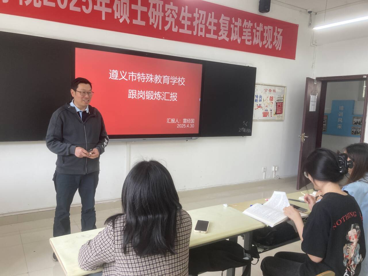 2025年5月7日下午,教育科学学院特殊教育系在逸夫楼516教室开展教师跟岗实践学习交流会,特殊教育系杨曼、雷经国老师分别分享了在贵阳市花溪区特殊教育学校、遵义市特殊教育学校跟岗实践情况。