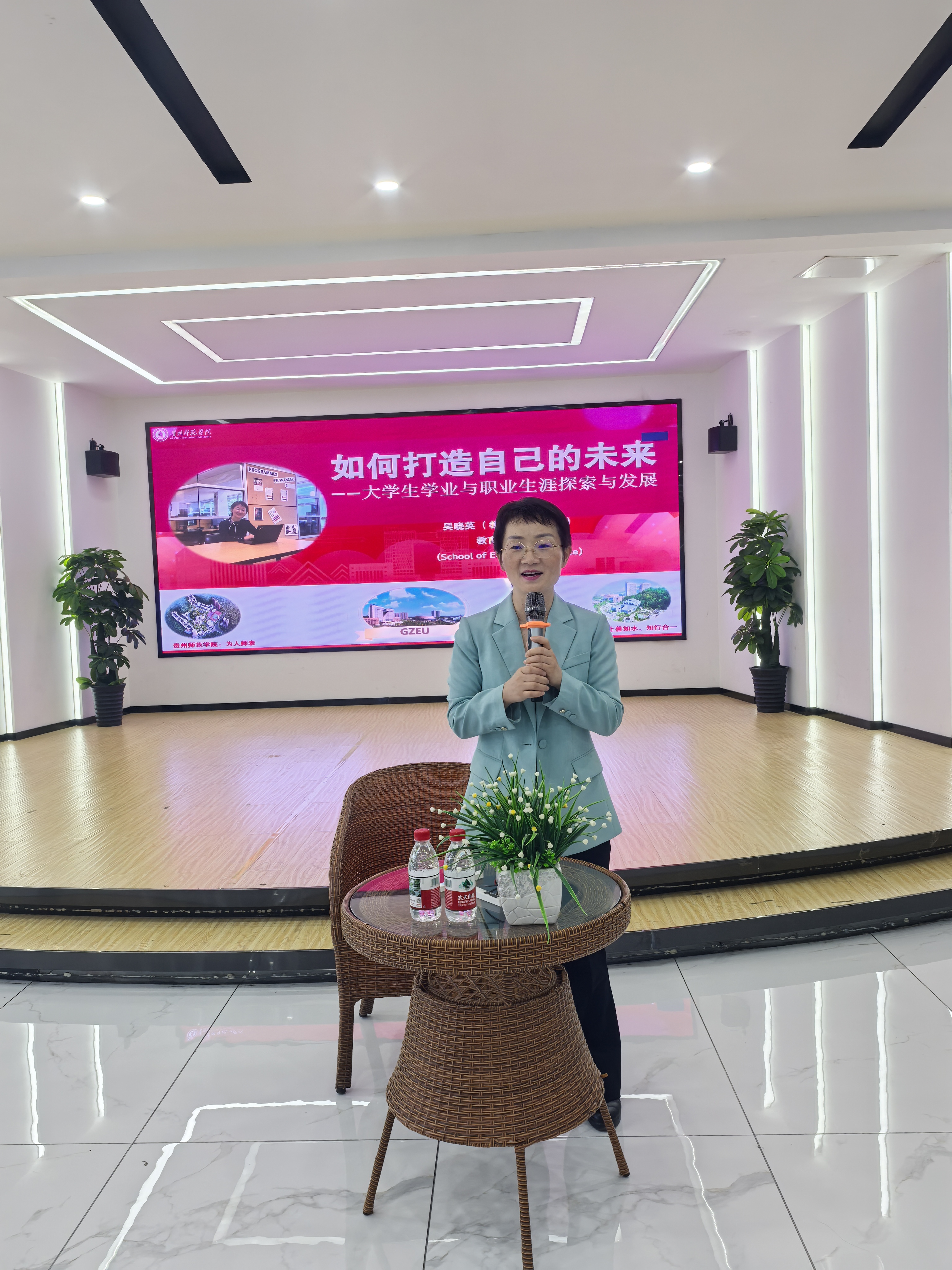 在接下来的活动中,吴晓英以“我是谁?”为引,让同学从多方面介绍自己,并深入了解学生面临的学业与职业挑战。她指出,科学的生涯规划需以“自我认知”为起点,鼓励学生“以终为始”,通过职业目标倒推学业路径,通过学业发展助力职业选择。吴晓英还询问同学们想成为谁,并举出陶行知、叶圣陶等教育大家的经典名言为同学们做引导,同学们积极互动,多样化的职业选择得到吴晓英的认同,她鼓励同学们要努力学习,不断提升自己,早日达成自己的目标。吴晓英还分享她在国外游学经历,并告诉同学们活到老学到老,只有不断学习、不断丰富自己的学识才能在以后的求职之路上有更多的选择。