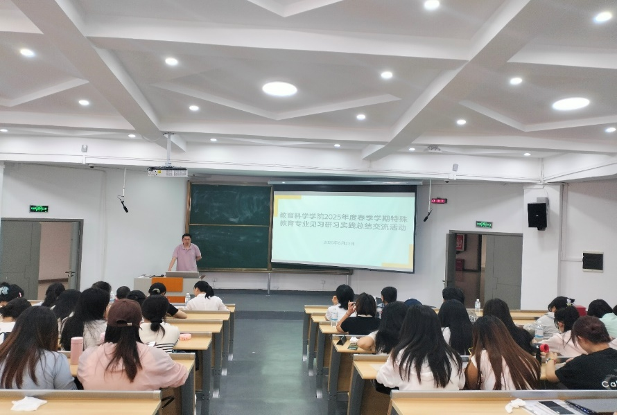 2025年6月23日,教育科学学院2025年度特殊教育专业全系三个年级的见习研习实践总结会在宁静楼顺利开展。本次总结会旨在回顾实践历程、分享经验成果,进一步推动特殊教育专业人才培养质量提升。贵州royal皇家88平台党委副书记、院长宋万琚,副书记傅小芳,以及吴晓英、杨曼、夏卉芳、杨娟等教师出席活动,特殊教育系主任雷经国主持会议。