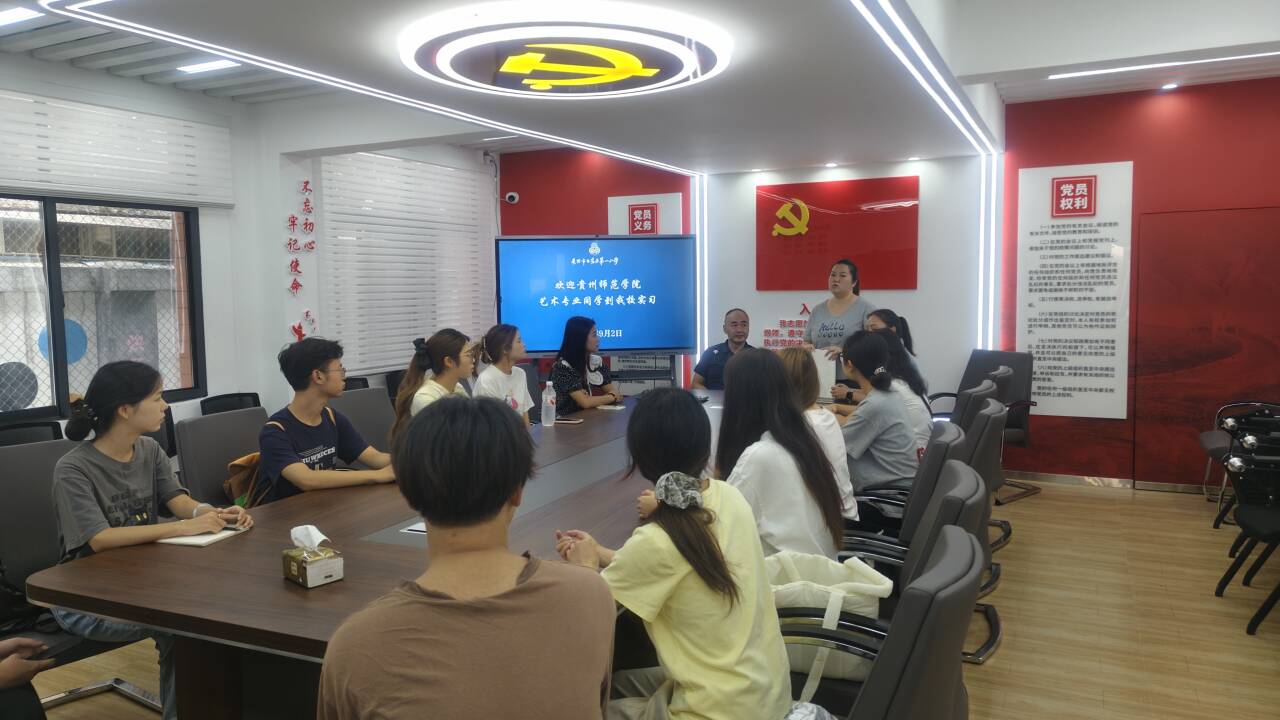 2025年9月2日上午9点,龙雪梅老师带领艺术教育专业12名同学到贵阳市云岩区第一小学分校区实习报到,并召开云岩一小实习指导教师培训交流会。