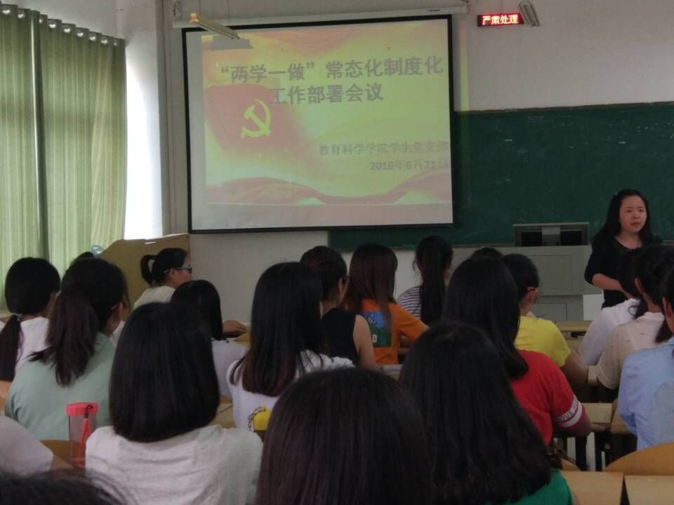 6月21日,教育科学学院学生党支部在逸夫楼515教室召开了“两学一做”常态化制度化启动及工作部署会议。此次会议由学生党支部书记申苒老师主持,教育科学学院学生党支部全体党员到场参加。