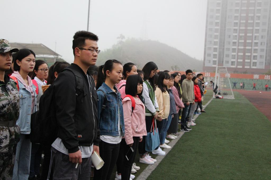 4月2日,教育科学学院全体学生在足球场举行升国旗仪式。 上午7点半,在全院学生的注视下,英姿飒爽的国旗班护卫队迈着整齐划一、铿锵有力的步伐,护送五星红旗进场。伴随着激昂的国歌,全体行注目礼,随着升旗手振臂一挥,五星国旗徐徐升起,在贵州师范学院晨曦中飘扬。接着,我院2015级学前教育二班的严学英作为学生代表进行国旗下讲话,她讲话的主题是"做新时代的雷锋.做敢于进取的新时代青年",希望同学们在日后的学习中发扬雷锋精神,志存高远,将祖国对青年的嘱托牢记心中,将责任和担当扛在肩上。升旗仪式在激情洋溢的校歌声中圆满结束。