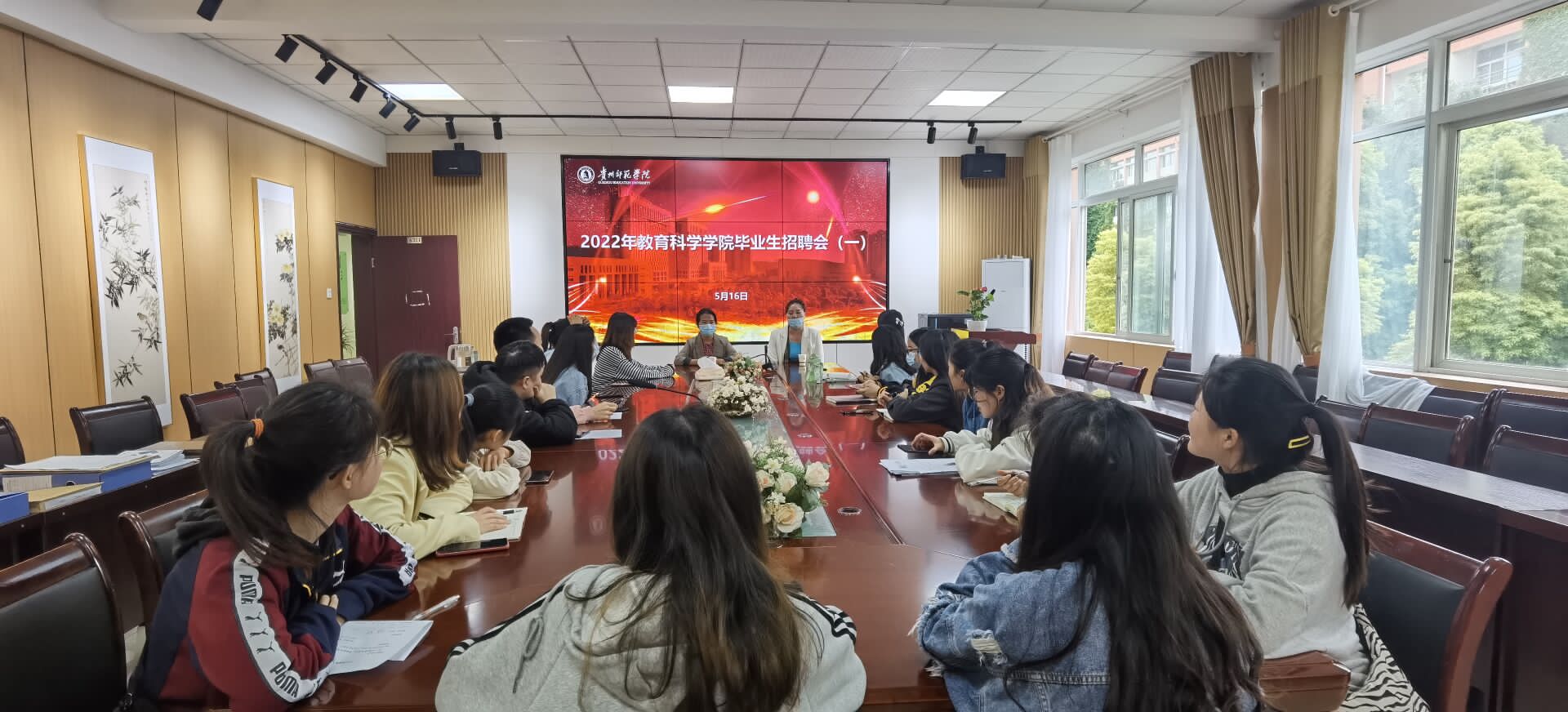 5月16日,教育科学学院在逸夫楼321会议室举行2022届毕业生招聘会。此次招聘会邀请到了贵州聚才教育咨询有限工作负责人王开凤一行2人到我院宣讲。此次招聘会由学院对接招就处的辅导员鲁蓓蓓老师主持。2022届学前教育毕业生参加了此次招聘会。