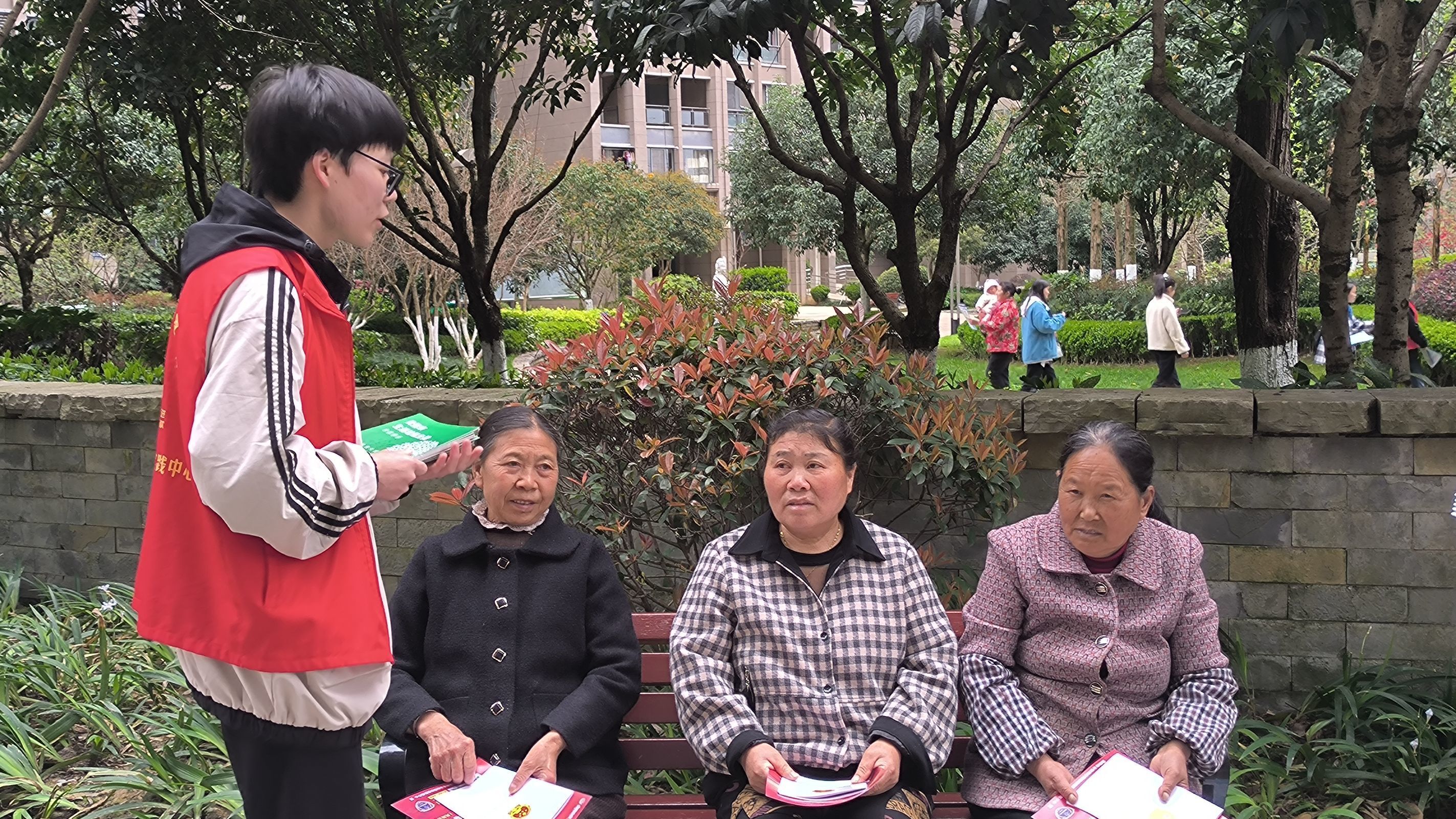 2023年4月10日,教育科学学院2022级应用心理学团支部与2022级艺术教育团支部的同学们来到乌当区龙广路街道龙广社区进行“专业知识进社区”志愿宣讲活动。同学们深入社区大街小巷向老年群众开展防范养老诈骗宣传活动,扎实推进打击整治养老诈骗行动,提高老年人防诈骗“免疫力”,守护长辈们的“钱袋子”。