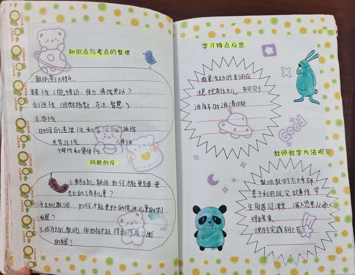 同时,教育科学学院立足本院四大专业特色,创新性开展与本院学生专业相关的“7+N学风建设”,开展了“悦读乐享”读书、“全勤明星”、寻找“图书馆男神女神”、学霸寝室、“最美笔记达人”等评选活动。 其中,20级应用心理学班雷帮金、20级特殊教育班韩灿被评为“图书馆男神女神”,激励同学们积极到图书馆借阅书籍,博览群书以拓展视野;20级学前教育班兰园320寝室、21级特殊教育班竹园523寝室被评为学霸寝室,让同学们充分意识到好的寝室集体造就良好的习惯和环境,寝室同学们的资源共享能使大家对课程的重难点有更好的把握,预习和复习的成效显著提升;21级学前教育班杨昌芬、郭心茹被评为“最美笔记达人”,促进同学们及时进行知识梳理、总结、反思,记好笔记,提高学习效率;并且20级学前教育王丽、22级艺术教育赵才焱2名同学被评为为“全勤明星”。教科院通过系列品牌活动优化育人环境,为涵养优良学风提供了强大动能。